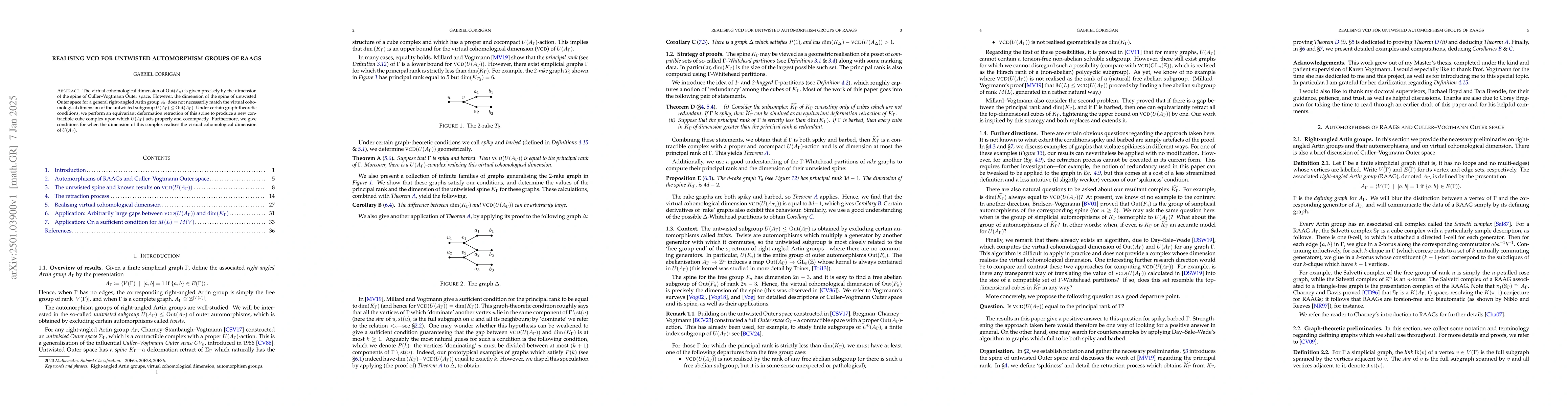 The virtual cohomological dimension of $\operatorname{Out}(F_n)$ is given precisely by the dimension of the spine of Culler--Vogtmann Outer space. However, the dimension of the spine of untwisted Outer space for a general right-angled Artin group $A_\Gamma$ does not necessarily match the virtual cohomological dimension of the untwisted subgroup $U(A_\Gamma) \leq \operatorname{Out}(A_\Gamma)$. Under certain graph-theoretic conditions, we perform an equivariant deformation retraction of this spine to produce a new contractible cube complex upon which $U(A_\Gamma)$ acts properly and cocompactly. Furthermore, we give conditions for when the dimension of this complex realises the virtual cohomological dimension of $U(A_\Gamma)$.