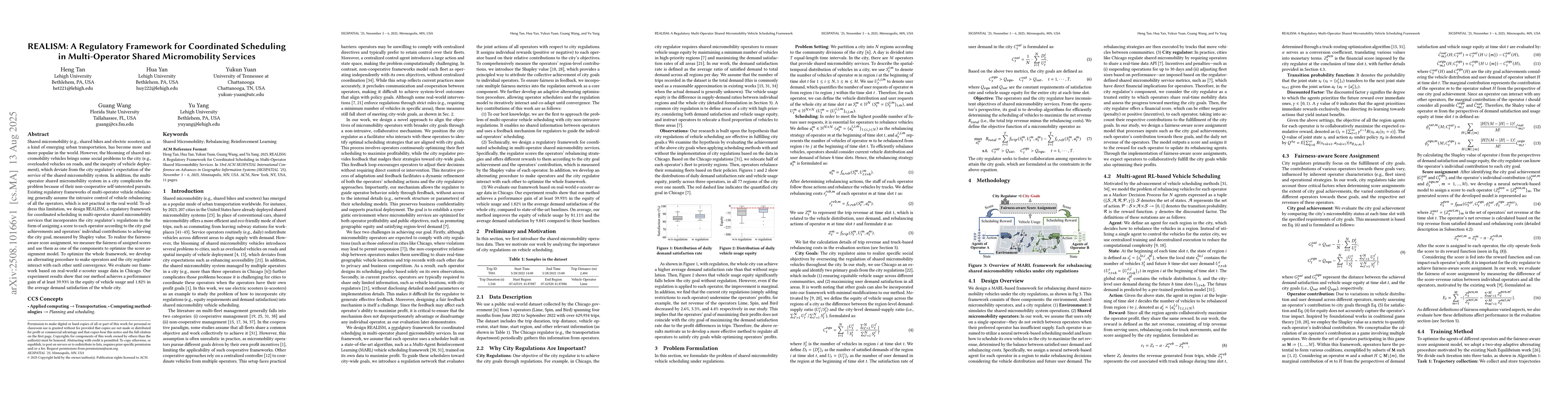 Shared micromobility (e.g., shared bikes and electric scooters), as a kind of emerging urban transportation, has become more and more popular in the world. However, the blooming of shared micromobility vehicles brings some social problems to the city (e.g., overloaded vehicles on roads, and the inequity of vehicle deployment), which deviate from the city regulator's expectation of the service of the shared micromobility system. In addition, the multi-operator shared micromobility system in a city complicates the problem because of their non-cooperative self-interested pursuits. Existing regulatory frameworks of multi-operator vehicle rebalancing generally assume the intrusive control of vehicle rebalancing of all the operators, which is not practical in the real world. To address this limitation, we design REALISM, a regulatory framework for coordinated scheduling in multi-operator shared micromobility services that incorporates the city regulator's regulations in the form of assigning a score to each operator according to the city goal achievements and operators' individual contributions to achieving the city goal, measured by Shapley value. To realize the fairness-aware score assignment, we measure the fairness of assigned scores and use them as one of the components to optimize the score assignment model. To optimize the whole framework, we develop an alternating procedure to make operators and the city regulator interact with each other until convergence. We evaluate our framework based on real-world e-scooter usage data in Chicago. Our experiment results show that our method achieves a performance gain of at least 39.93% in the equity of vehicle usage and 1.82% in the average demand satisfaction of the whole city.