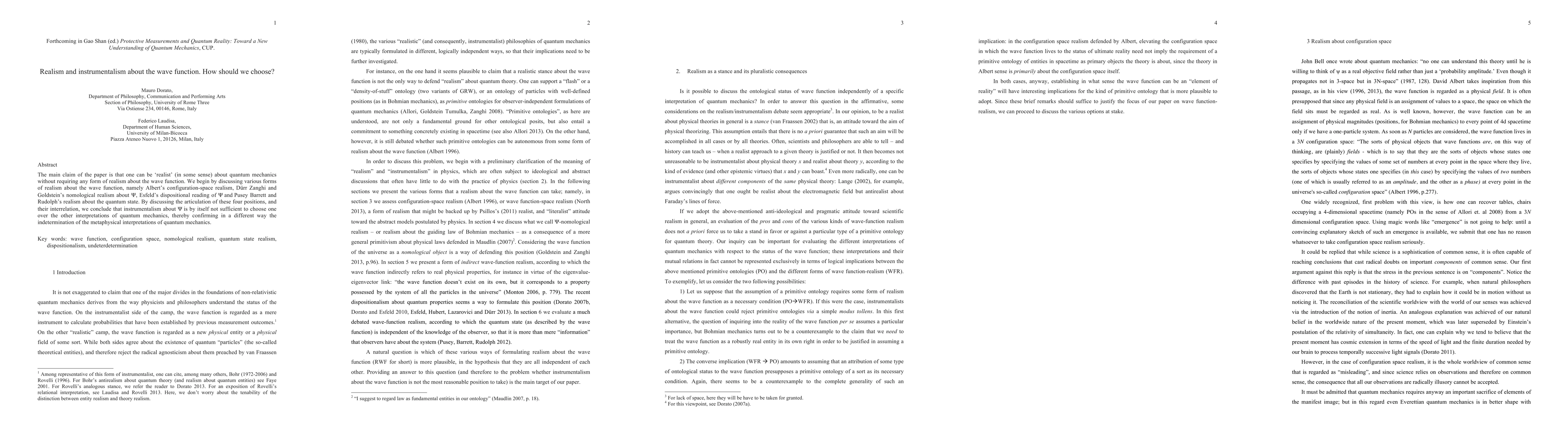 The main claim of the paper is that one can be 'realist' (in some sense) about quantum mechanics without requiring any form of realism about the wave function. We begin by discussing various forms of realism about the wave function, namely Albert's configuration-space realism, Duerr Zanghi and Goldstein's nomological realism about the wave function, Esfeld's dispositional reading of the wave function and Pusey Barrett and Rudolph's realism about the quantum state. By discussing the articulation of these four positions, and their interrelation, we conclude that instrumentalism about the wave function is by itself not sufficient to choose one over the other interpretations of quantum mechanics, thereby confirming in a different way the indetermination of the metaphysical interpretations of quantum mechanics.