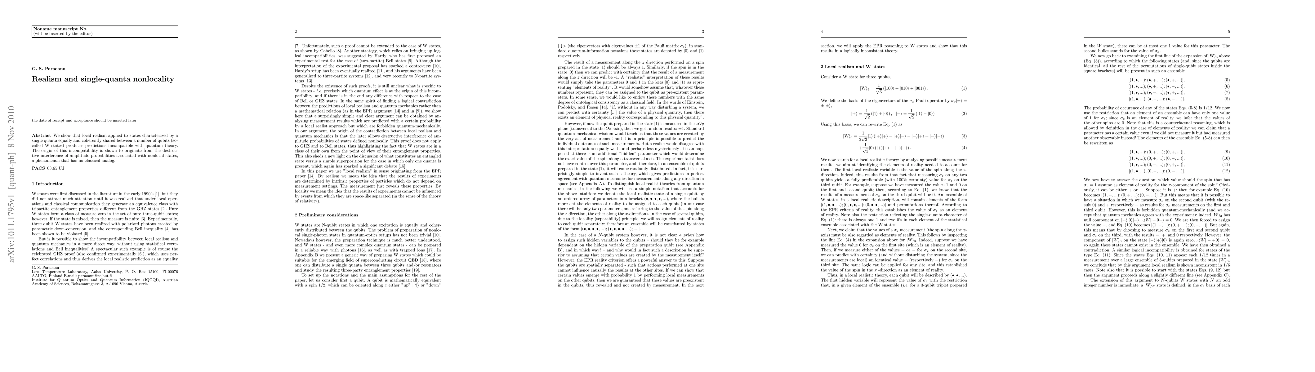We show that local realism applied to states characterized by a single quanta equally and coherently shared between a number of qubits (so-called W states) produces predictions incompatible with quantum theory. The origin of this incompatibility is shown to originate from the destructive interference of amplitude probabilities associated with nonlocal states, a phenomenon that has no classical analog.
