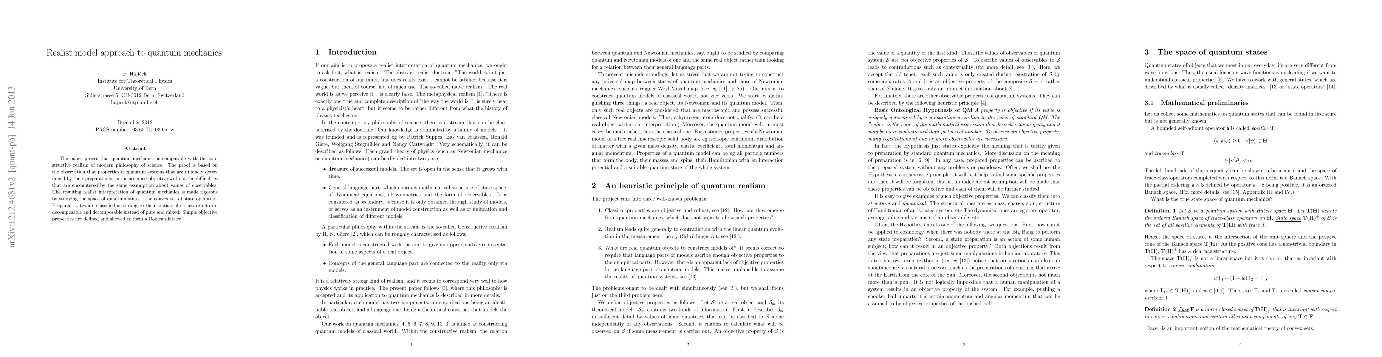 The paper demonstrates that quantum mechanics aligns with constructive realism by asserting that uniquely determined properties of quantum systems can be considered objective. It rigorously develops a realist interpretation by classifying prepared states and defining simple objective properties forming a Boolean lattice.