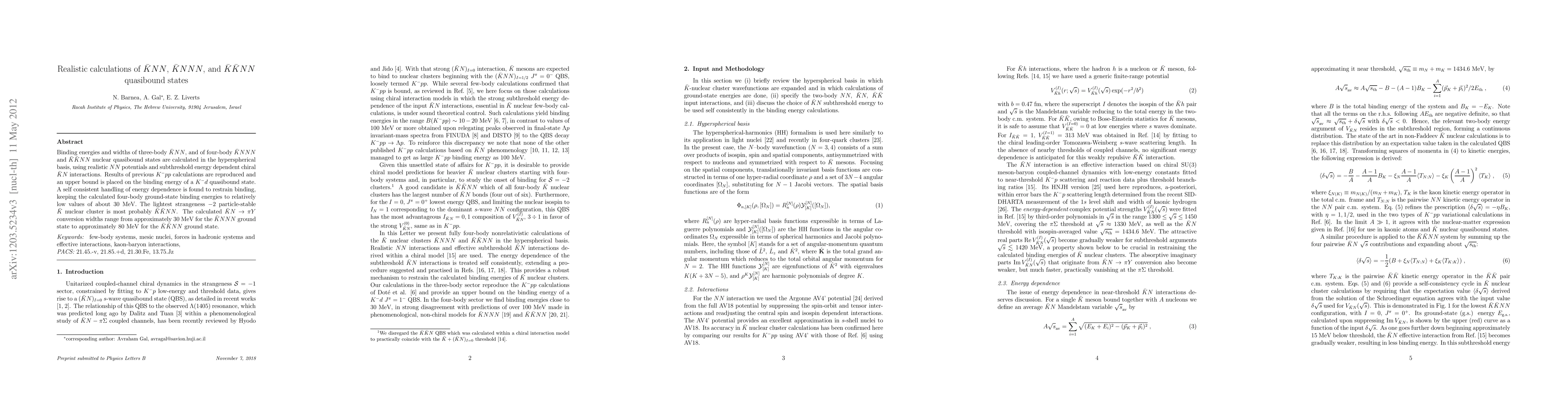 This paper calculates binding energies and widths of nuclear quasibound states using realistic potentials and interactions, finding the lightest stable cluster to be KbarKbarNN and setting an upper bound on a K^-d quasibound state.