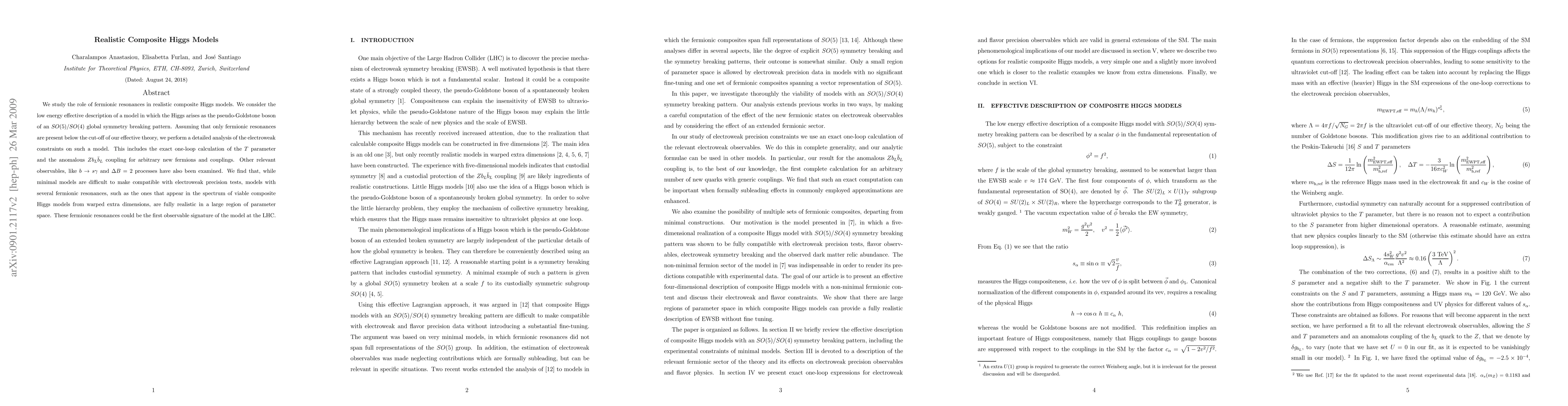 This paper investigates the viability of composite Higgs models where the Higgs is a pseudo-Goldstone boson from SO(5)/SO(4) symmetry breaking, focusing on fermionic resonances. It finds that while minimal models struggle with electroweak precision tests, models with multiple fermionic resonances, especially those from warped extra dimensions, are realistic and could be detected at the LHC.