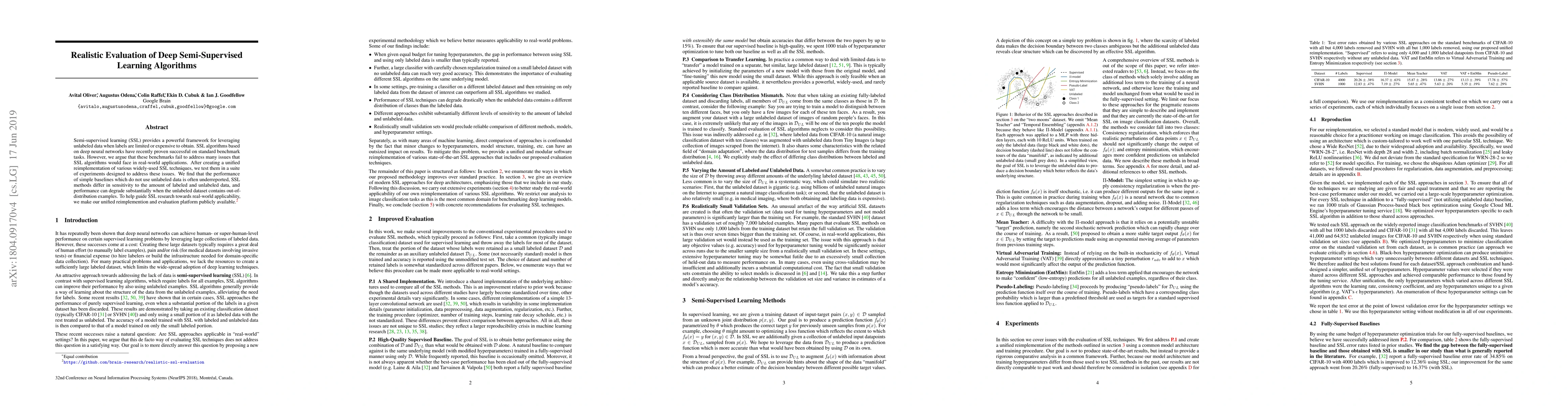 Semi-supervised learning (SSL) provides a powerful framework for leveraging unlabeled data when labels are limited or expensive to obtain. SSL algorithms based on deep neural networks have recently proven successful on standard benchmark tasks. However, we argue that these benchmarks fail to address many issues that these algorithms would face in real-world applications. After creating a unified reimplementation of various widely-used SSL techniques, we test them in a suite of experiments designed to address these issues. We find that the performance of simple baselines which do not use unlabeled data is often underreported, that SSL methods differ in sensitivity to the amount of labeled and unlabeled data, and that performance can degrade substantially when the unlabeled dataset contains out-of-class examples. To help guide SSL research towards real-world applicability, we make our unified reimplemention and evaluation platform publicly available.