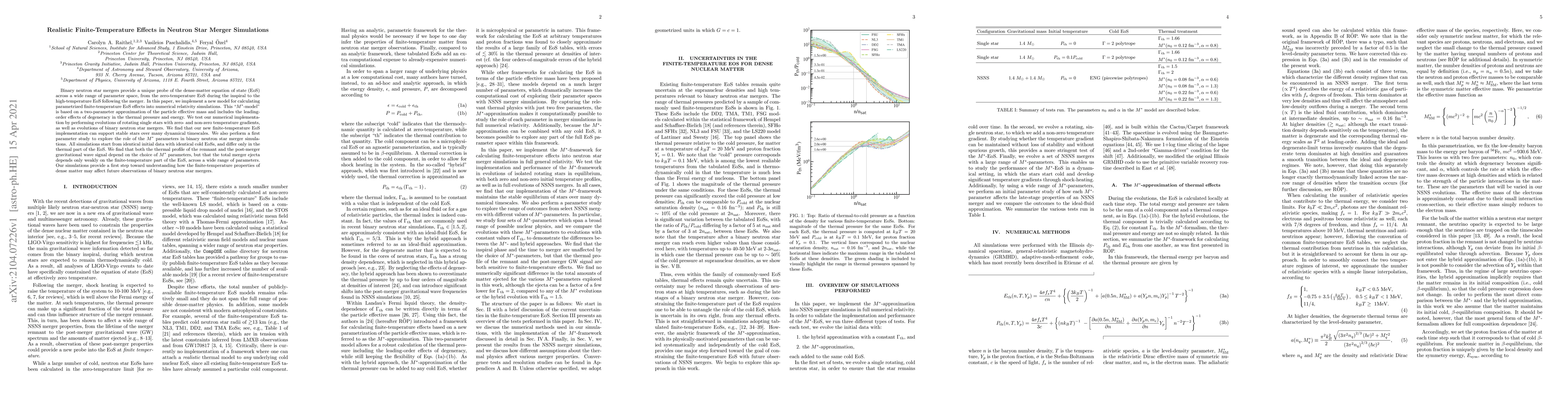 This paper introduces a new "M* model" for finite-temperature effects in neutron star merger simulations, showing that it can stabilize stars and influence the thermal profile and gravitational wave signal. The study finds that while the M* parameters affect merger outcomes, the total ejecta is relatively insensitive to finite-temperature effects across a range of parameters.