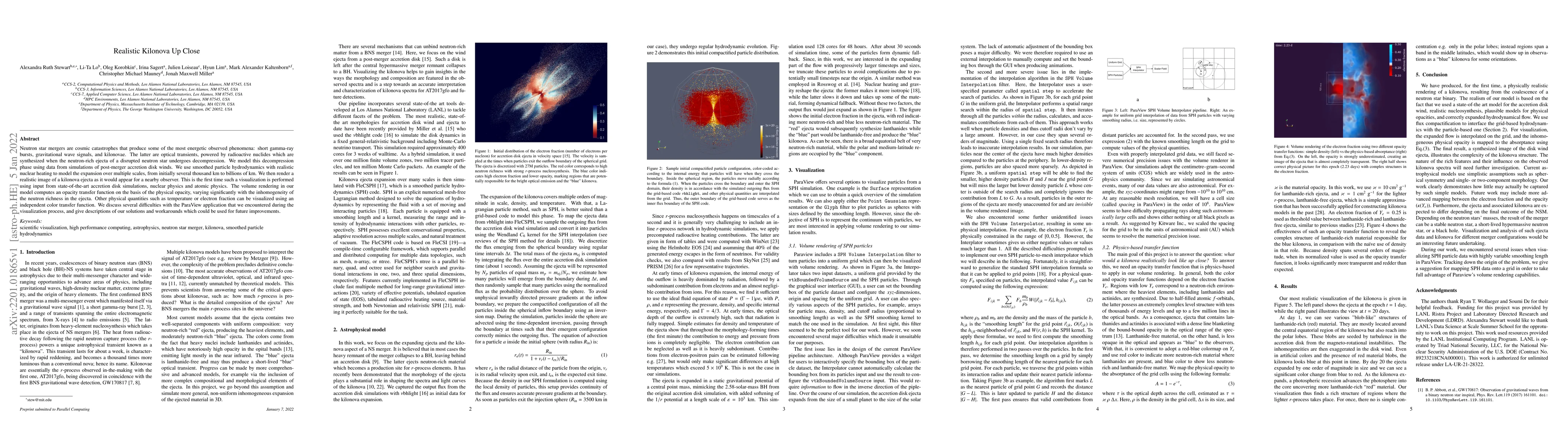 Neutron star mergers are cosmic catastrophes that produce some of the most energetic observed phenomena: short gamma-ray bursts, gravitational wave signals, and kilonovae. The latter are optical transients, powered by radioactive nuclides which are synthesized when the neutron-rich ejecta of a disrupted neutron star undergoes decompression. We model this decompression phase using data from simulations of post-merger accretion disk winds. We use smoothed particle hydrodynamics with realistic nuclear heating to model the expansion over multiple scales, from initially several thousand km to billions of km. We then render a realistic image of a kilonova ejecta as it would appear for a nearby observer. This is the first time such a visualization is performed using input from state-of-the-art accretion disk simulations, nuclear physics and atomic physics. The volume rendering in our model computes an opacity transfer function on the basis of the physical opacity, varying significantly with the inhomogeneity of the neutron richness in the ejecta. Other physical quantities such as temperature or electron fraction can be visualized using an independent color transfer function. We discuss several difficulties with the ParaView application that we encountered during the visualization process, and give descriptions of our solutions and workarounds which could be used for future improvements.
