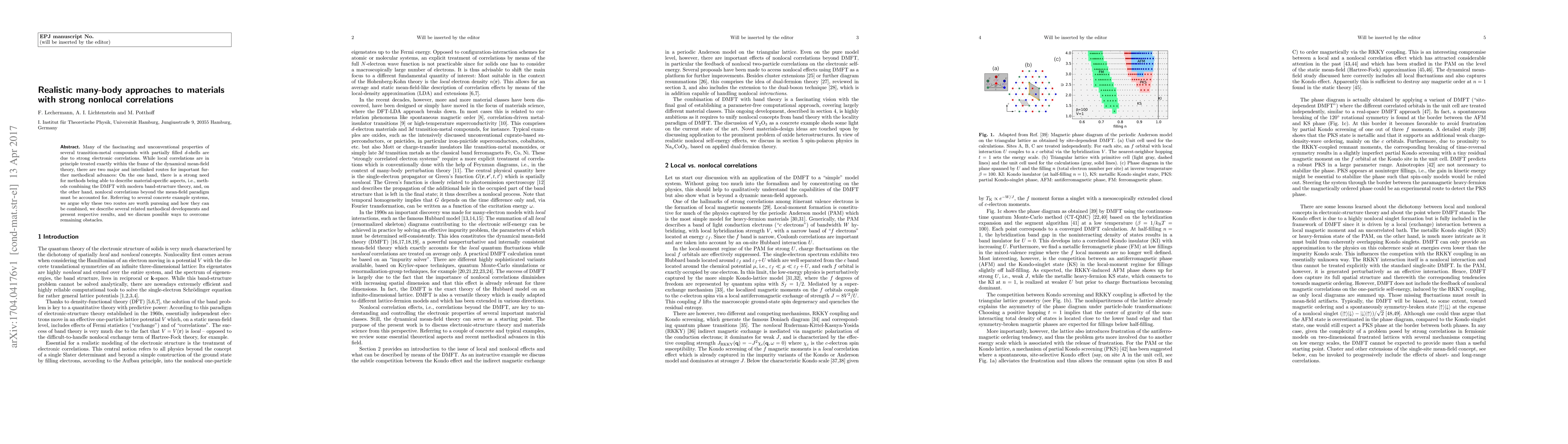 Many of the fascinating and unconventional properties of several transition-metal compounds with partially filled d-shells are due to strong electronic correlations. While local correlations are in principle treated exactly within the frame of the dynamical mean-field theory, there are two major and interlinked routes for important further methodical advances: On the one hand, there is a strong need for methods being able to describe material-specific aspects, i.e., methods combining the DMFT with modern band-structure theory, and, on the other hand, nonlocal correlations beyond the mean-field paradigm must be accounted for. Referring to several concrete example systems, we argue why these two routes are worth pursuing and how they can be combined, we describe several related methodical developments and present respective results, and we discuss possible ways to overcome remaining obstacles.