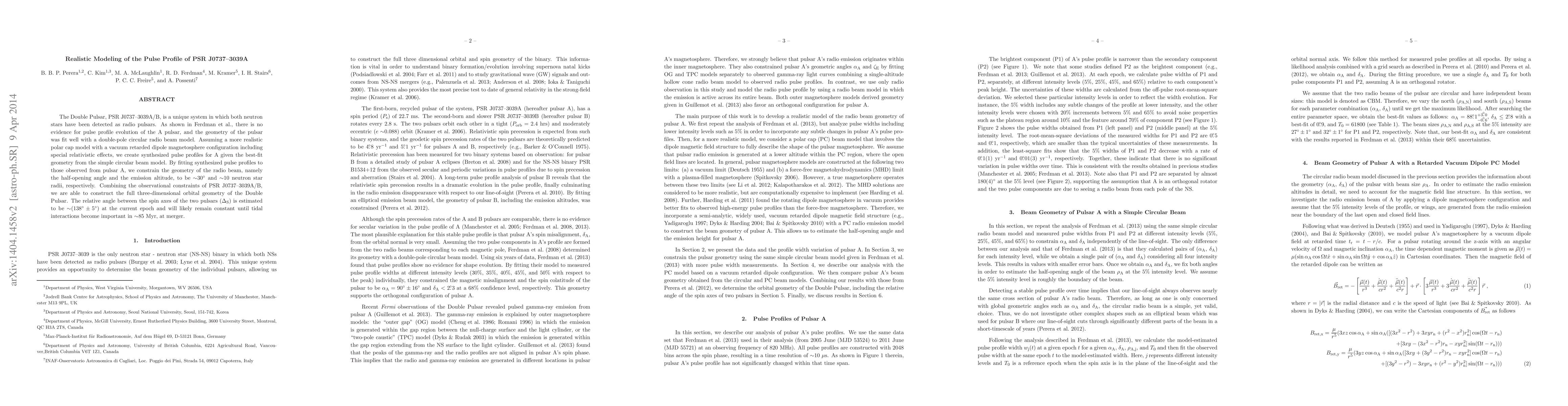 This paper models the pulse profile of PSR J0737-3039A using a realistic polar cap model, finding a half-opening angle of $30^\circ$ and emission altitude of 10 neutron star radii. It also determines the full three-dimensional orbital geometry of the Double Pulsar system, estimating the relative angle between the pulsars' spin axes as $138^\circ \pm 5^\circ$.