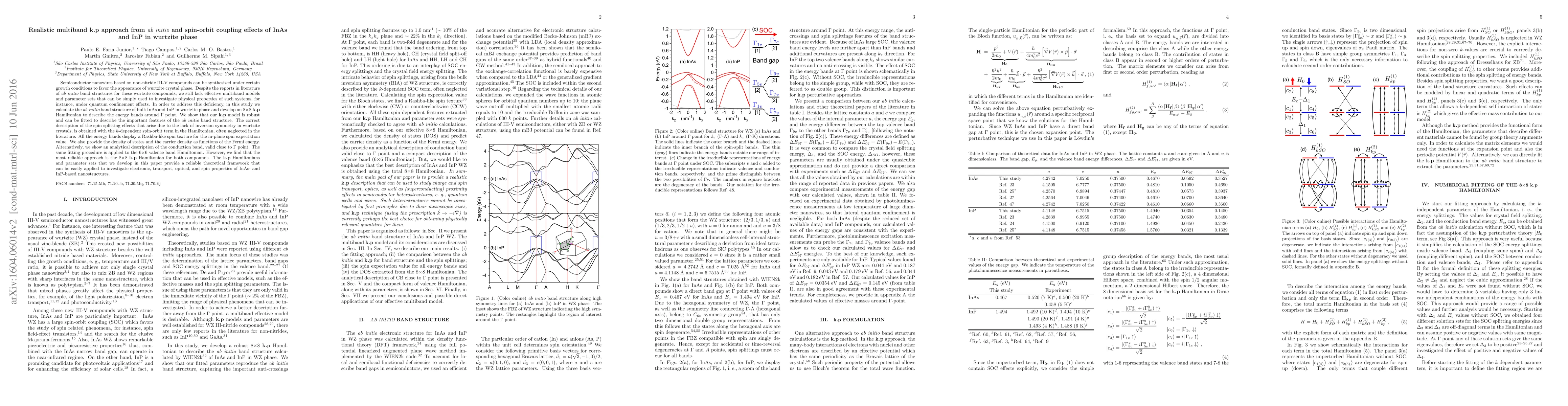 This paper develops an 8×8 k.p Hamiltonian to describe the band structure of InAs and InP in wurtzite phase, providing a robust model that accurately captures the ab initio band structure and spin-orbit coupling effects. The study offers a reliable theoretical framework for investigating electronic and spin properties in III-V semiconductor nanowires.