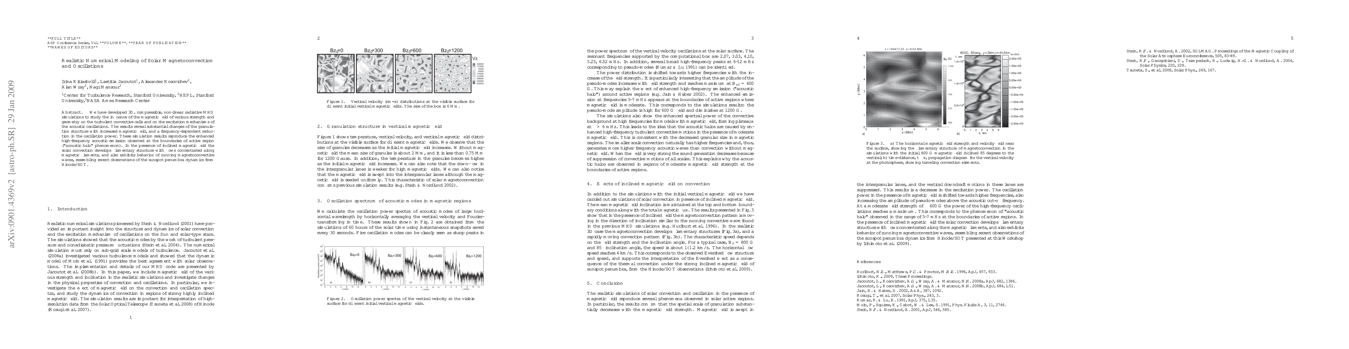 This paper presents 3D, compressible, non-linear radiative MHD simulations exploring solar magnetoconvection and oscillations under varying magnetic fields. The study finds significant changes in granulation structure and frequency-dependent oscillation power reduction, reproducing the "acoustic halo" phenomenon and revealing filamentary convection patterns along magnetic filaments.