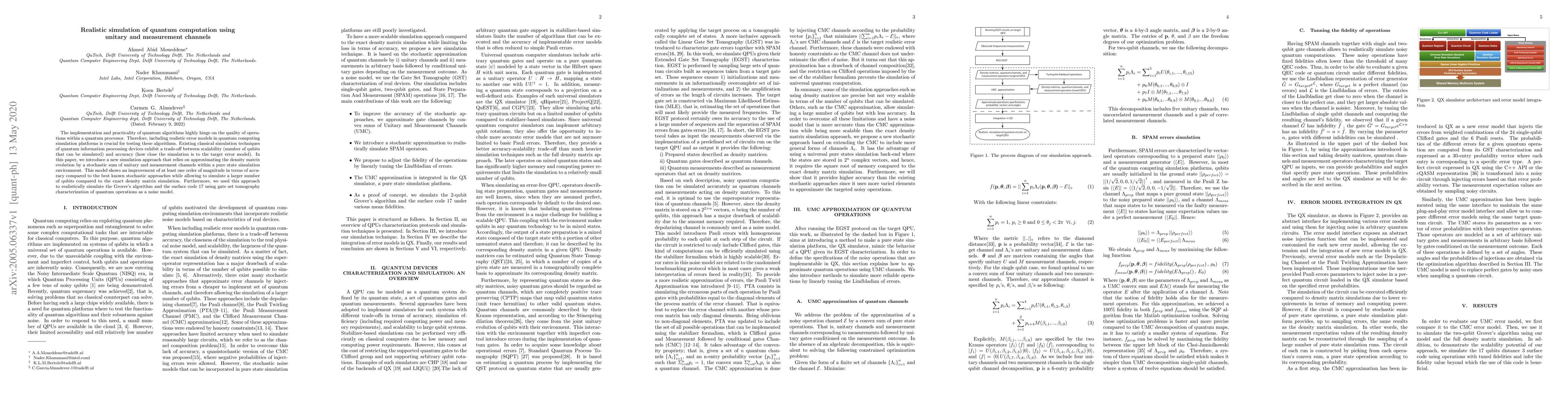 This paper presents a new simulation method for quantum computation that improves accuracy by approximating density matrix evolution through stochastic unitary and measurement channels, achieving better scalability and accuracy compared to existing techniques. The method was successfully applied to simulate Grover's algorithm and the surface code with gate set tomography.