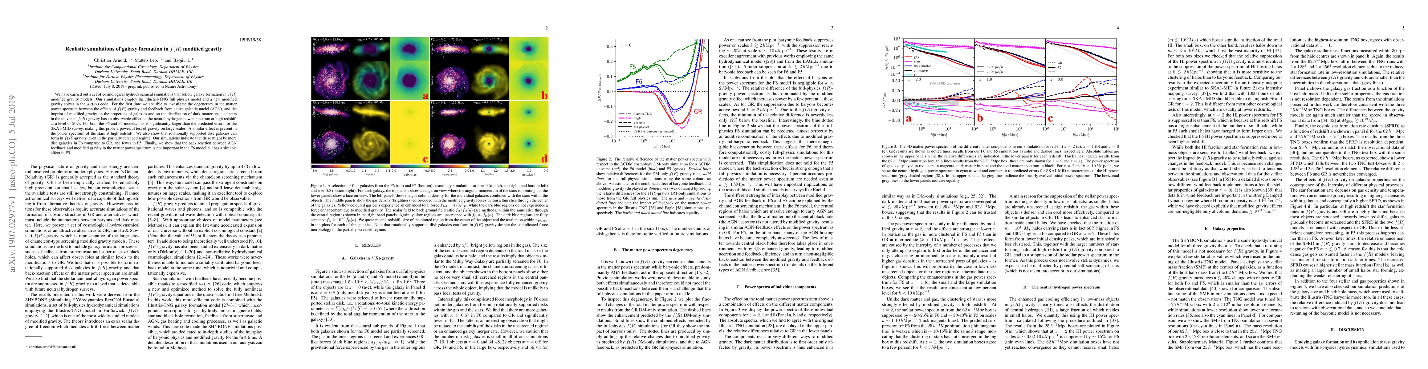 This paper presents cosmological simulations of galaxy formation under $f(R)$ modified gravity, revealing significant effects on the neutral hydrogen and star power spectra at high redshifts. The study finds that $f(R)$-gravity can lead to more disc galaxies in the F6 model compared to general relativity, while the interaction between AGN feedback and modified gravity varies between F5 and F6 models.
