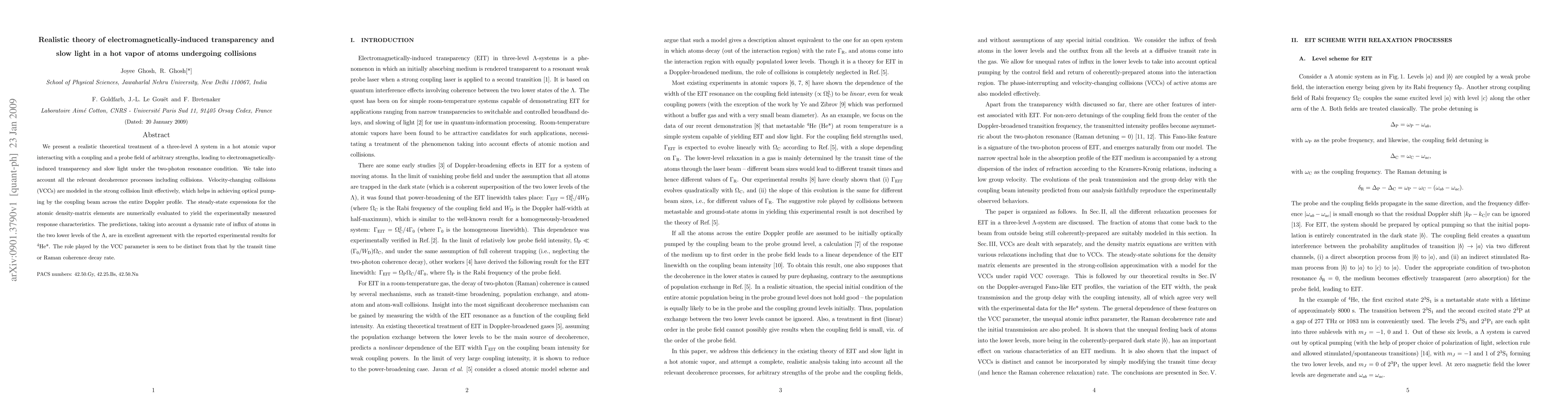 Researchers developed a realistic model of electromagnetically-induced transparency and slow light in hot atomic vapor, achieving excellent agreement with experimental results for $^4$He*.