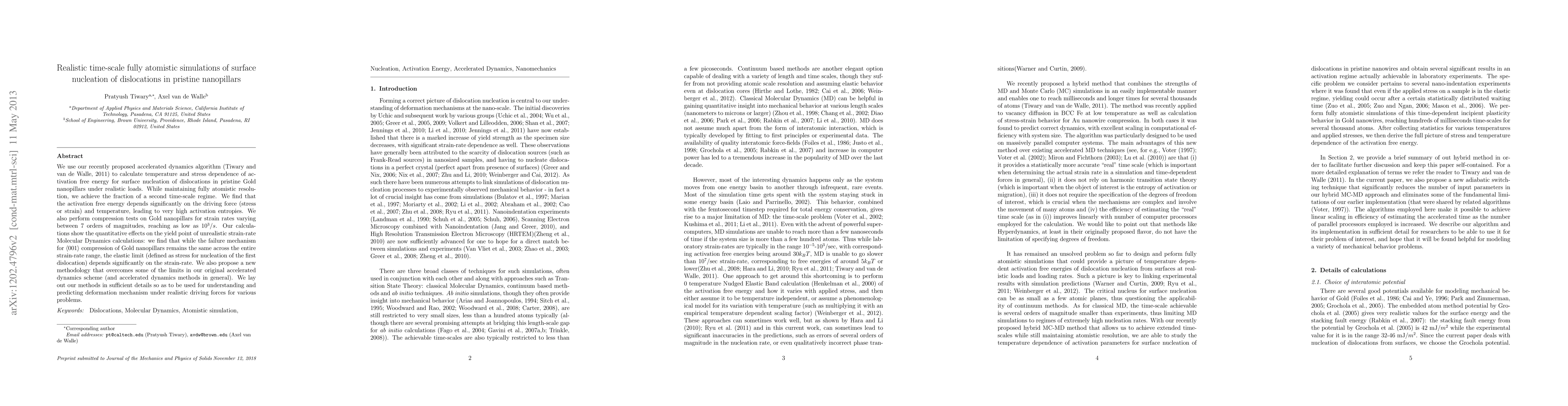 Researchers used a new algorithm to simulate the nucleation of dislocations in gold nanopillars at realistic speeds, finding that activation energy depends on stress and temperature, and proposing a new methodology to overcome limitations.