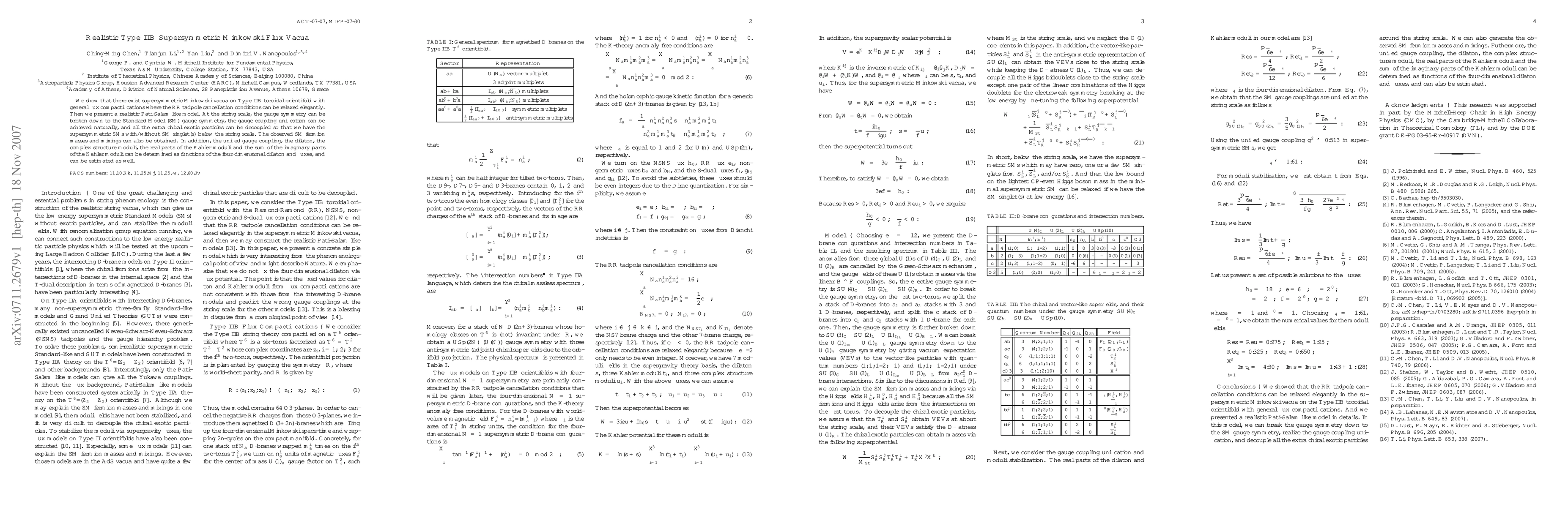This paper explores supersymmetric Minkowski vacua in Type IIB string theory with toroidal orientifold compactifications, demonstrating realistic Pati-Salam models that naturally unify gauge couplings and reproduce observed Standard Model fermion masses and mixings. The model ensures decoupling of extra chiral particles and determines various moduli and coupling constants in terms of fluxes and the four-dimensional dilaton.