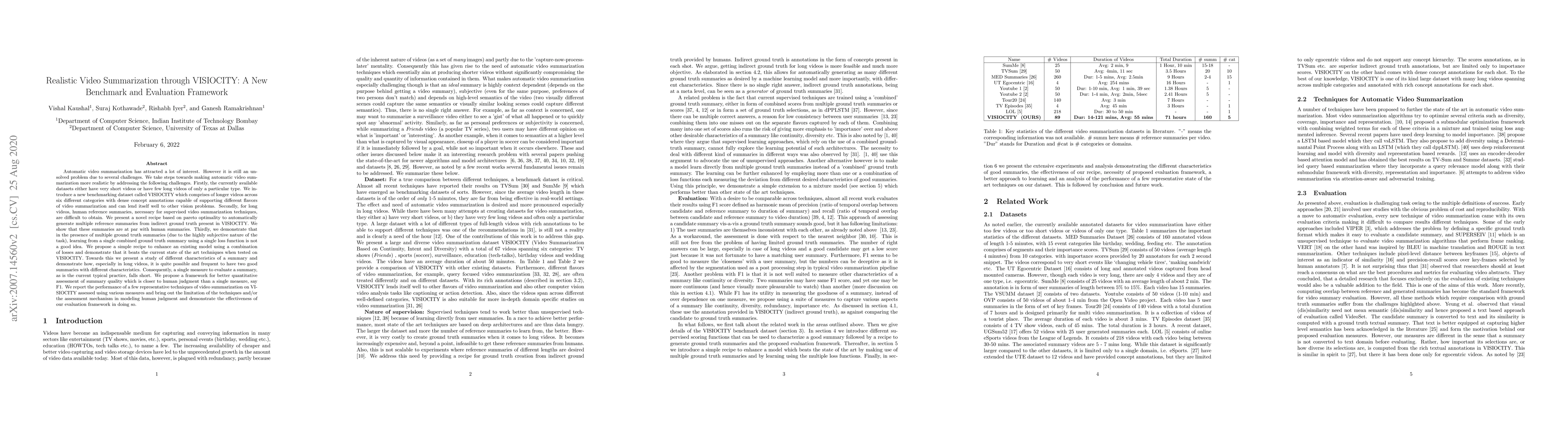 This paper introduces VISIOCITY, a new benchmark dataset for realistic video summarization, featuring longer videos across six categories with dense annotations. It also proposes a method to generate multiple reference summaries using pareto optimality, demonstrating their equivalence to human summaries. The study highlights the limitations of single-loss training and proposes VISIOCITY-SUM, a model enhanced with multiple losses, outperforming current state-of-the-art techniques. Additionally, it presents a comprehensive evaluation framework to better assess summary quality, moving beyond single metrics.