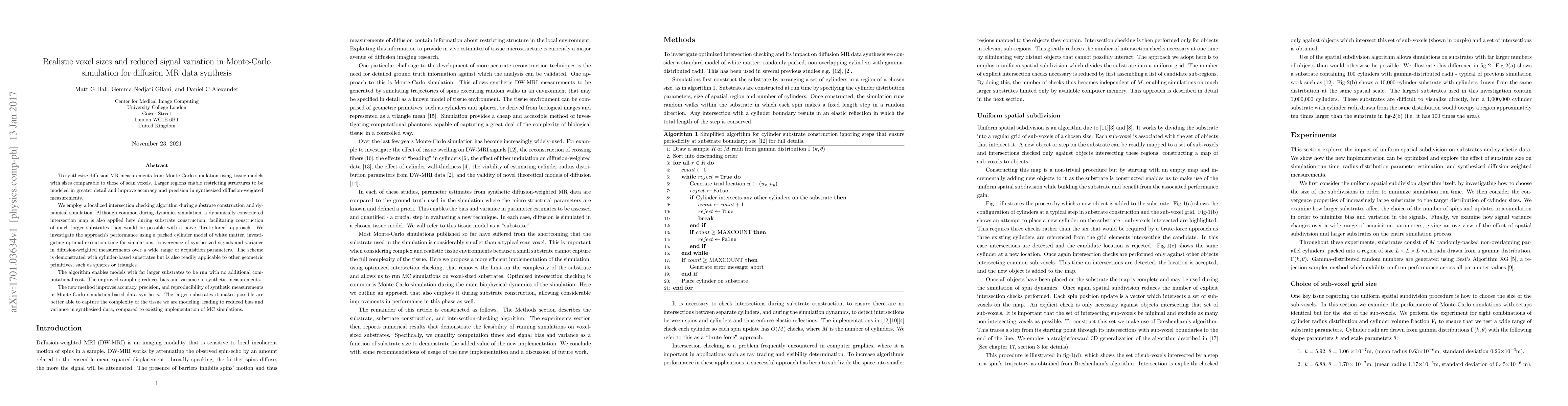 Researchers developed an improved method for synthesizing diffusion MR data from Monte-Carlo simulations, enabling larger tissue models with reduced signal variation and improved accuracy.