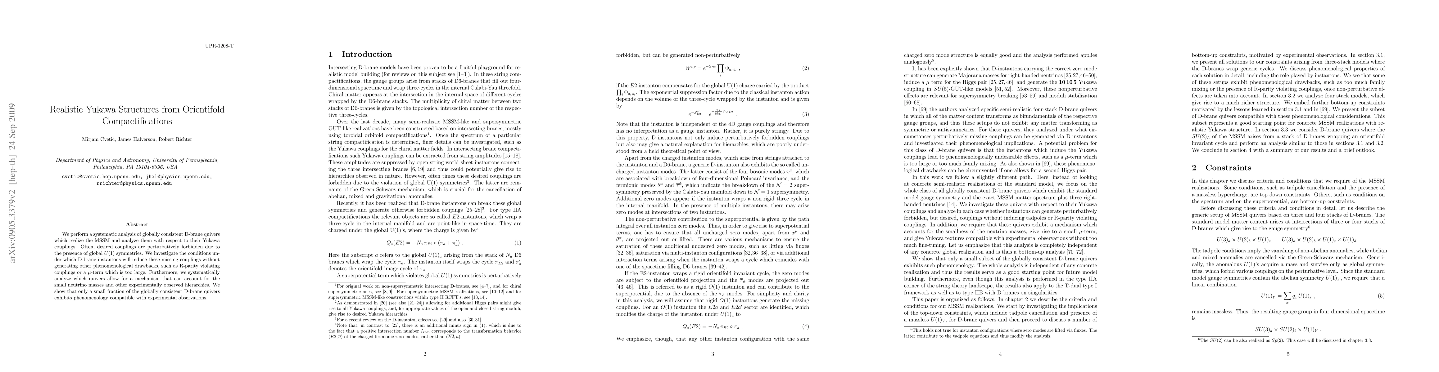 We perform a systematic analysis of globally consistent D-brane quivers which realize the MSSM, and analyze them with respect to their Yukawa couplings. Often, desired couplings are perturbatively forbidden due to the presence of global U(1) symmetries. We investigate the conditions under which D-brane instantons will induce these missing couplings without generating other phenomenological drawbacks, such as R-parity violating couplings or a mu-term which is too large. Furthermore, we systematically analyze which quivers allow for a mechanism that can account for the small neutrino masses and other experimentally observed hierarchies. We show that only a small fraction of the globally consistent D-brane quivers exhibits phenomenology compatible with experimental observations.