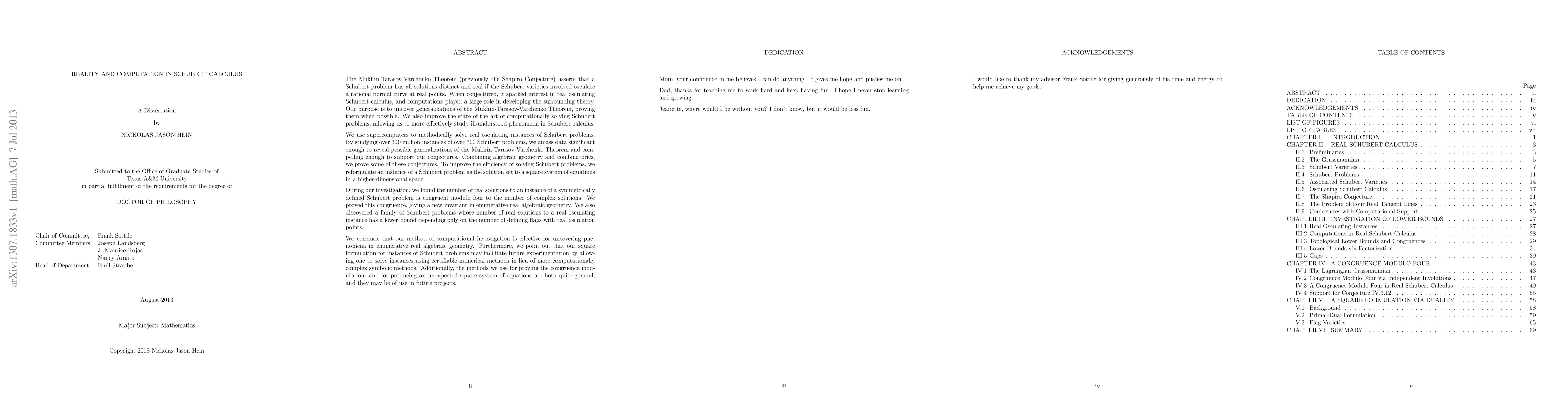 The paper proves generalizations of the Mukhin-Tarasov-Varchenko Theorem in real osculating Schubert calculus and improves computational methods for solving Schubert problems. By analyzing over 300 million instances, the authors discovered a congruence between the number of real and complex solutions to certain Schubert problems, introducing a new invariant in real algebraic geometry.