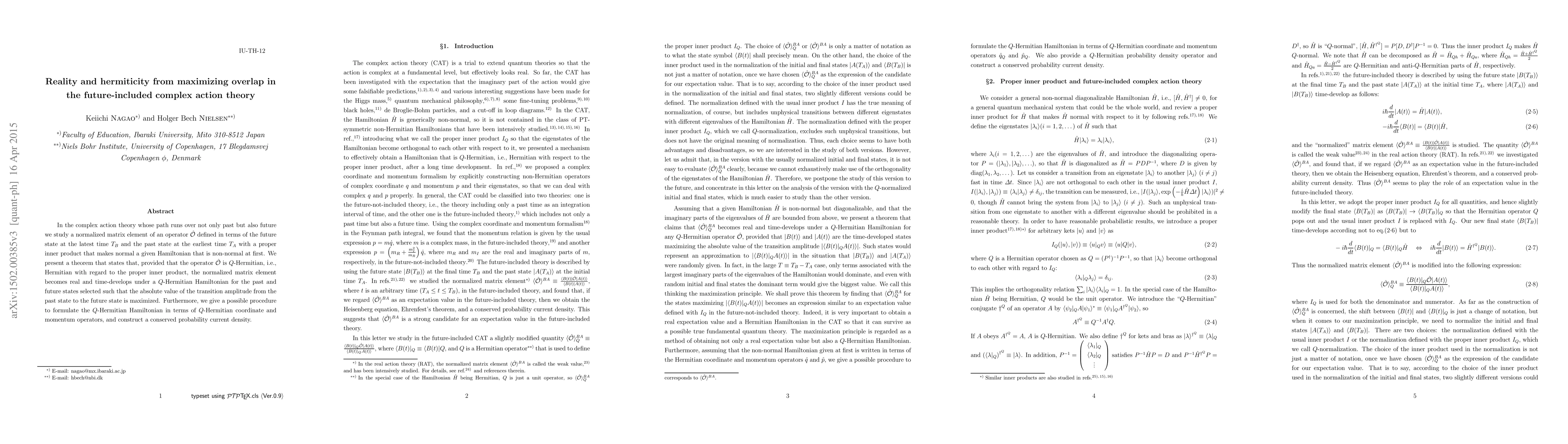 A new theorem proves that a normalized matrix element of an operator becomes real under a Q-Hermitian Hamiltonian when the transition amplitude is maximized. This breakthrough advances complex action theory to include future states.