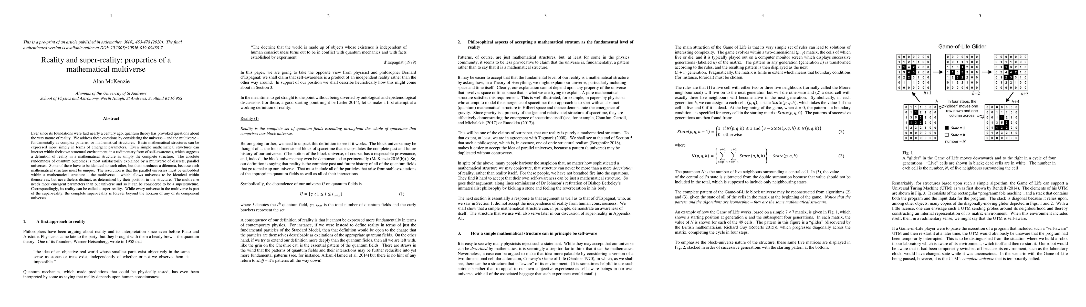 Ever since its foundations were laid nearly a century ago, quantum theory has provoked questions about the very nature of reality. We address these questions by considering the universe, and the multiverse, fundamentally as complex patterns, or mathematical structures. Basic mathematical structures can be expressed more simply in terms of emergent parameters. Even simple mathematical structures can interact within their own structural environment, in a rudimentary form of self-awareness, which suggests a definition of reality in a mathematical structure as simply the complete structure. The absolute randomness of quantum outcomes is most satisfactorily explained by a multiverse of discrete, parallel universes. Some of these have to be identical to each other, but that introduces a dilemma, because each mathematical structure must be unique. The resolution is that the parallel universes must be embedded within a mathematical structure, the multiverse, which allows universes to be identical within themselves, but nevertheless distinct, as determined by their position in the structure. The multiverse needs more emergent parameters than our universe and so it can be considered to be a superstructure. Correspondingly, its reality can be called a super-reality. While every universe in the multiverse is part of the super-reality, the complete super-reality is forever beyond the horizon of any of its component universes.