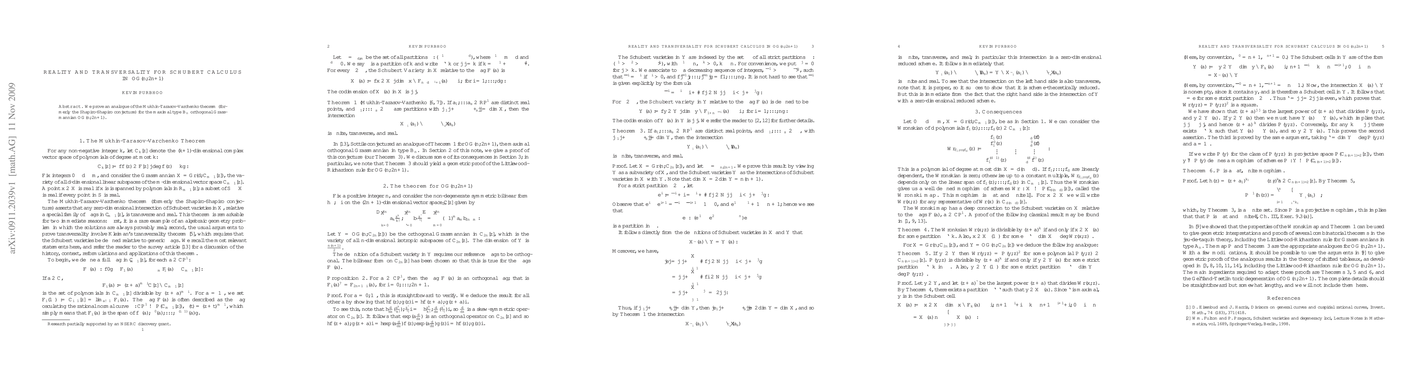 The paper proves an analogue of the Mukhin-Tarasov-Varchenko theorem for Schubert calculus on the maximal type B_n orthogonal Grassmannian OG(n,2n+1), establishing a significant result in the field. This advancement extends the understanding of transversality and reality properties in orthogonal Grassmannians.