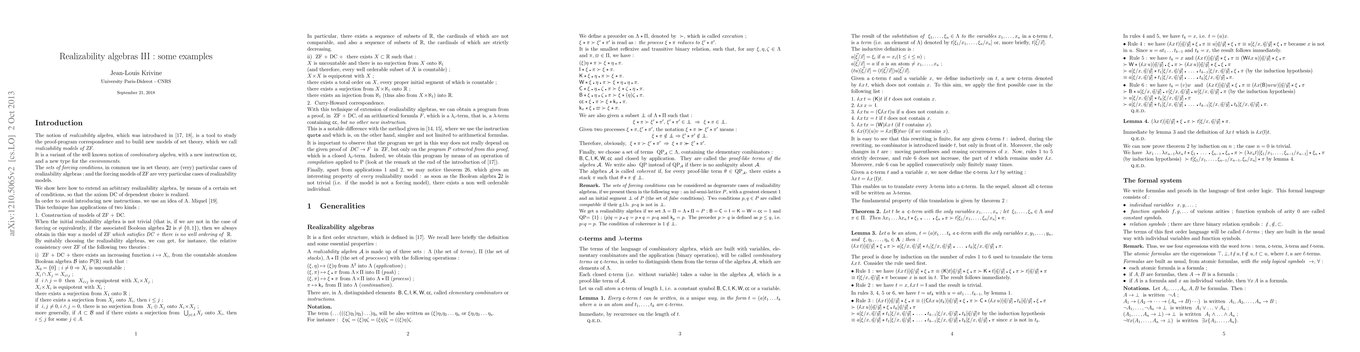 We use the technique of "classical realizability" to build new models of ZF + DC in which R is not well ordered. This gives new relative consistency results, probably not obtainable by forcing. This gives also a new method to get programs from proofs of arithmetical formulas with dependent choice.