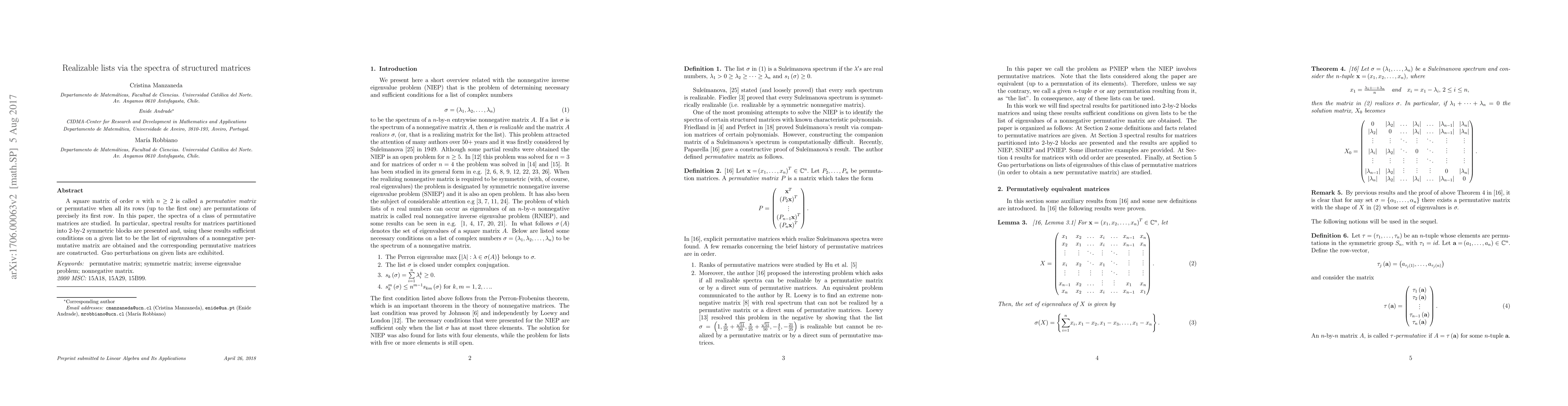 This paper investigates permutative matrices, specifically their spectra, to find conditions for given lists of eigenvalues and construct corresponding matrices. It also explores perturbations on these lists.