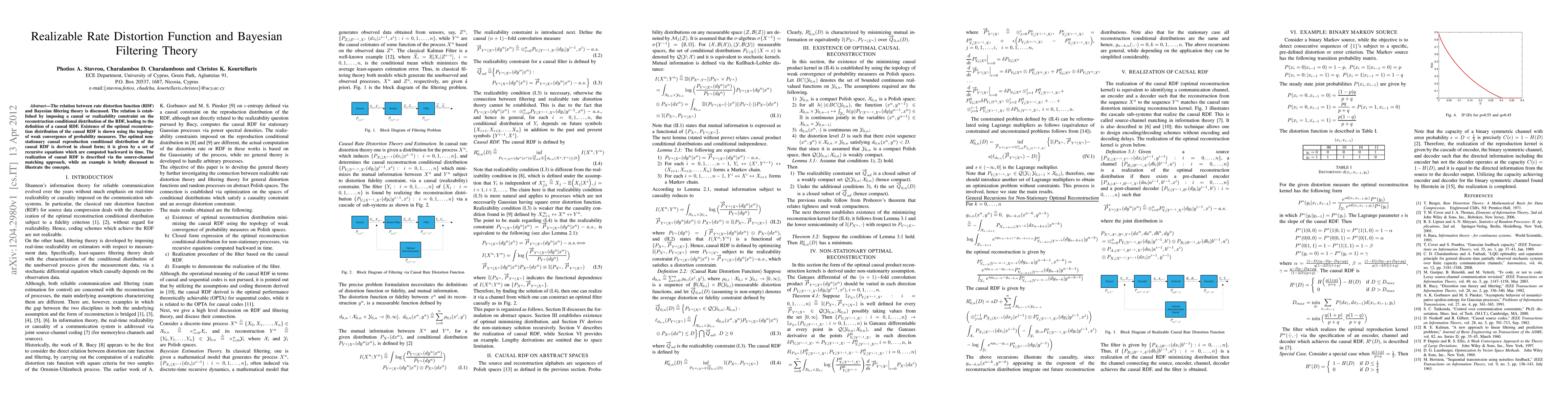 This paper establishes a connection between the rate distortion function (RDF) and Bayesian filtering theory by introducing a causal RDF under realizability constraints. It derives the optimal non-stationary causal reconstruction distribution in closed form through recursive equations and discusses its realization via source-channel matching.