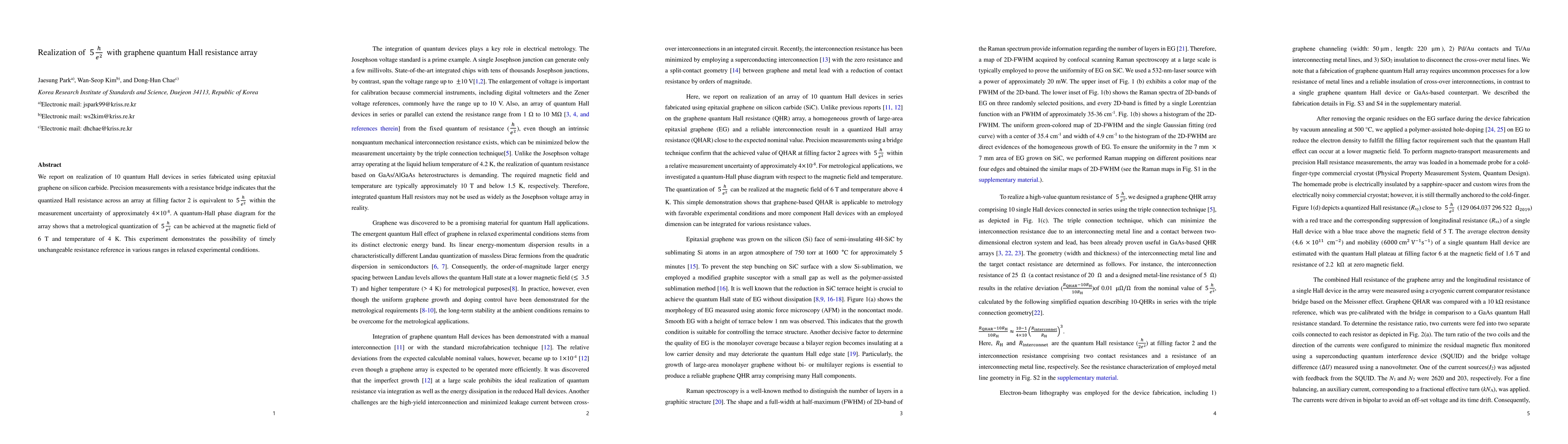 This research demonstrates the realization of a quantized Hall resistance array using epitaxial graphene, achieving a precision of 5 h/e^2 at a magnetic field of 6 T and temperature of 4 K. The experiment highlights the potential for reliable resistance references under relaxed experimental conditions.