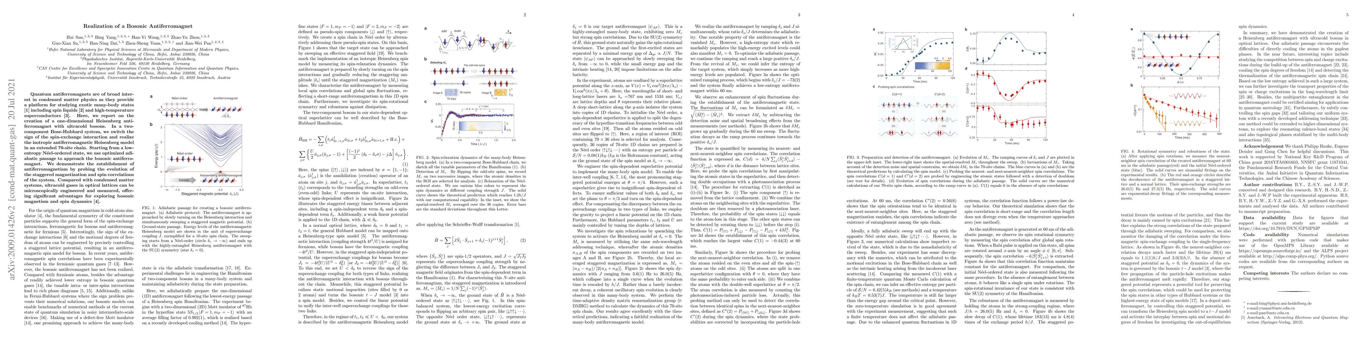 This paper reports the creation of a one-dimensional bosonic antiferromagnet using ultracold bosons in a two-component Bose-Hubbard system, achieving the isotropic antiferromagnetic Heisenberg model. The study demonstrates the establishment of antiferromagnetism through the evolution of staggered magnetization and spin correlations, highlighting the advantages of ultracold gases in optical lattices for exploring bosonic magnetism.