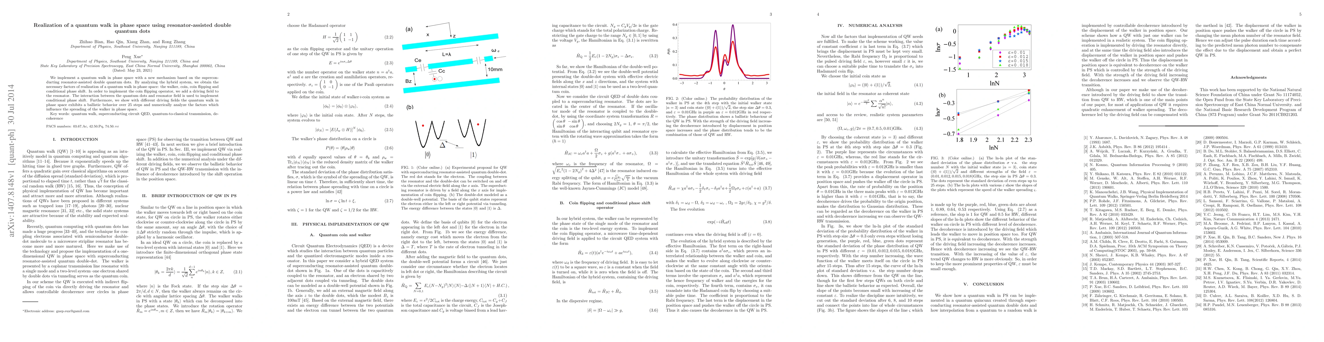 Researchers create a quantum walk in phase space using resonator-assisted double quantum dots, demonstrating ballistic behavior over 25 steps, and analyzing factors that influence walker spreading.
