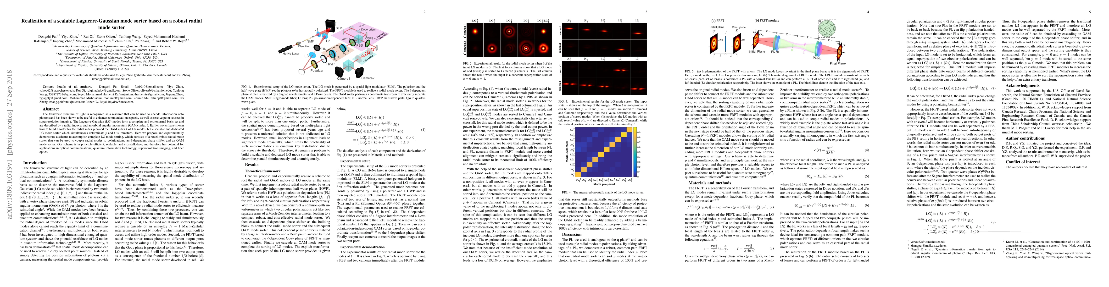 This paper proposes and demonstrates a scalable Laguerre-Gaussian mode sorter based on a robust radial mode sorter, combining it with an l-dependent phase shifter and an OAM mode sorter for complete sorting of both radial and orbital angular momentum indices. The scheme is efficient, scalable, and crosstalk-free, promising applications in optical communications and quantum information technology.