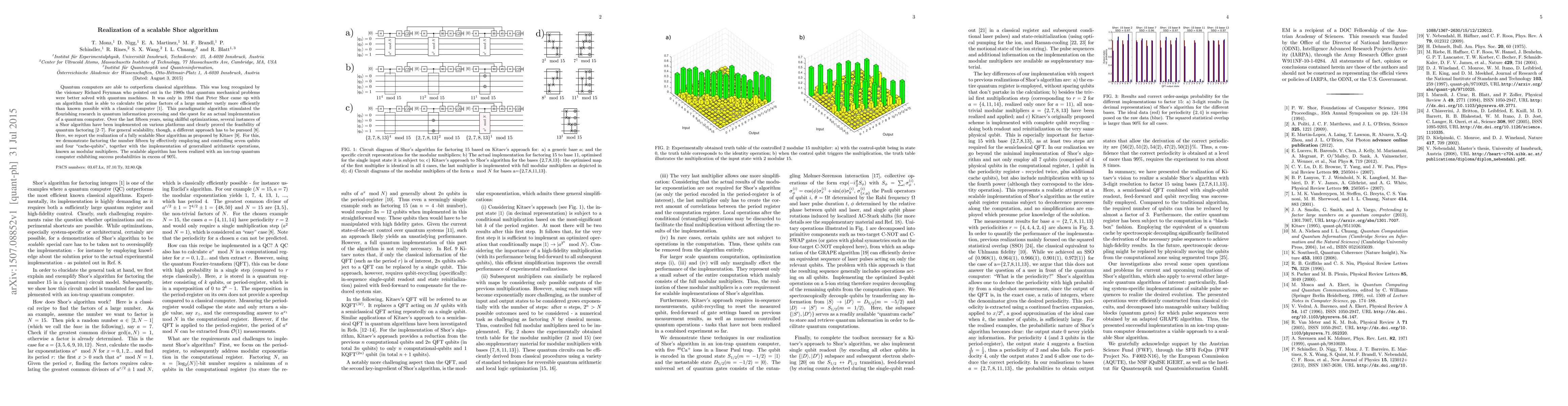 Quantum computers are able to outperform classical algorithms. This was long recognized by the visionary Richard Feynman who pointed out in the 1980s that quantum mechanical problems were better solved with quantum machines. It was only in 1994 that Peter Shor came up with an algorithm that is able to calculate the prime factors of a large number vastly more efficiently than known possible with a classical computer. This paradigmatic algorithm stimulated the flourishing research in quantum information processing and the quest for an actual implementation of a quantum computer. Over the last fifteen years, using skillful optimizations, several instances of a Shor algorithm have been implemented on various platforms and clearly proved the feasibility of quantum factoring. For general scalability, though, a different approach has to be pursued. Here, we report the realization of a fully scalable Shor algorithm as proposed by Kitaev. For this, we demonstrate factoring the number fifteen by effectively employing and controlling seven qubits and four "cache-qubits", together with the implementation of generalized arithmetic operations, known as modular multipliers. The scalable algorithm has been realized with an ion-trap quantum computer exhibiting success probabilities in excess of 90%.
