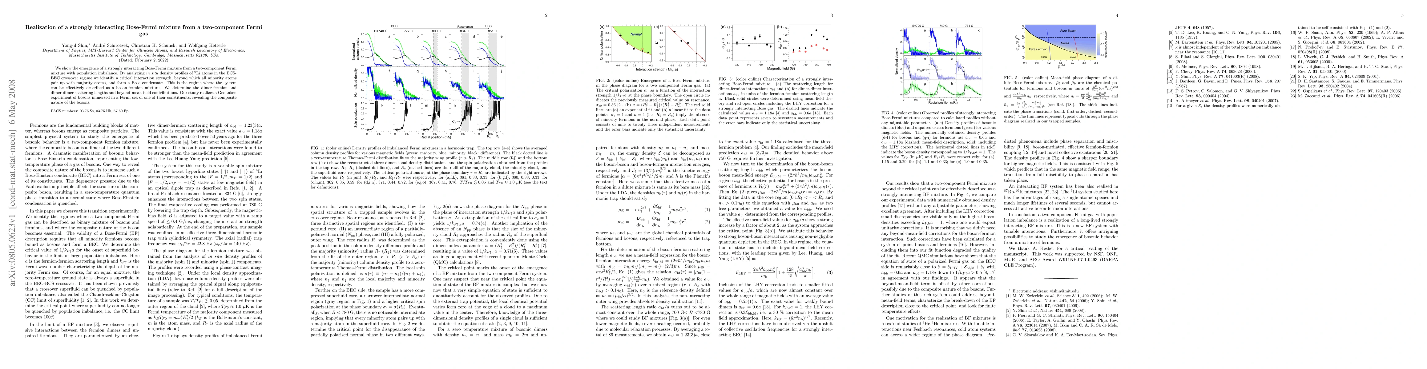 This paper demonstrates the emergence of a strongly interacting Bose-Fermi mixture from a two-component Fermi gas with population imbalance, identifying a critical interaction strength where minority atoms pair with majority atoms to form a Bose condensate. The study reveals the composite nature of the bosons and determines the scattering lengths and beyond-mean-field contributions.