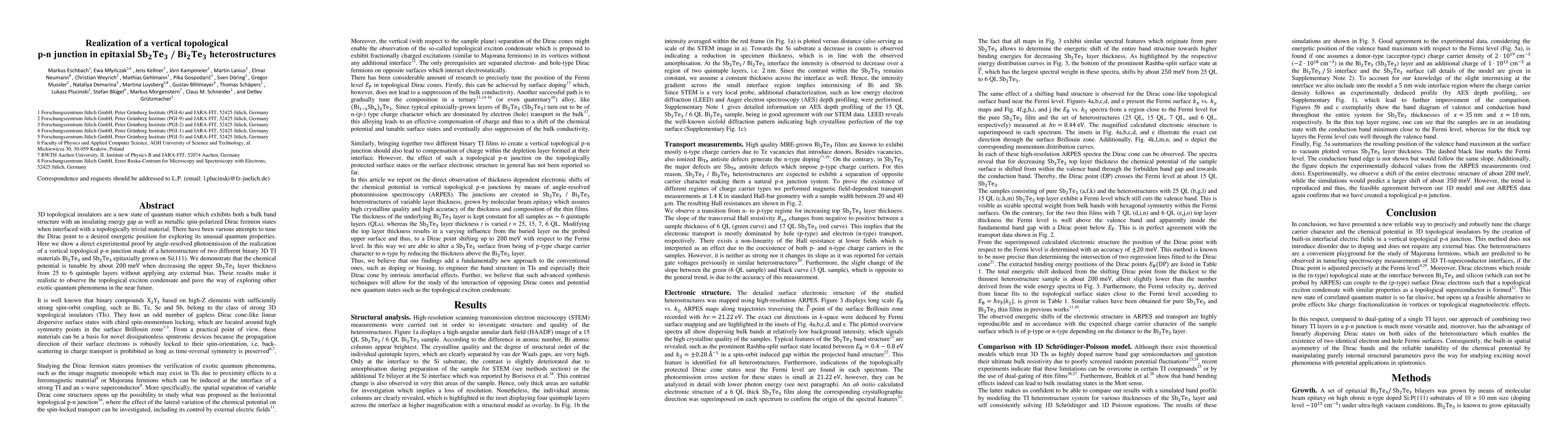 Researchers have successfully created a vertical topological p-n junction using a heterostructure of Bi2Te3 and Sb2Te3 materials, allowing them to tune the Dirac point's energy position within 200 meV without external bias.