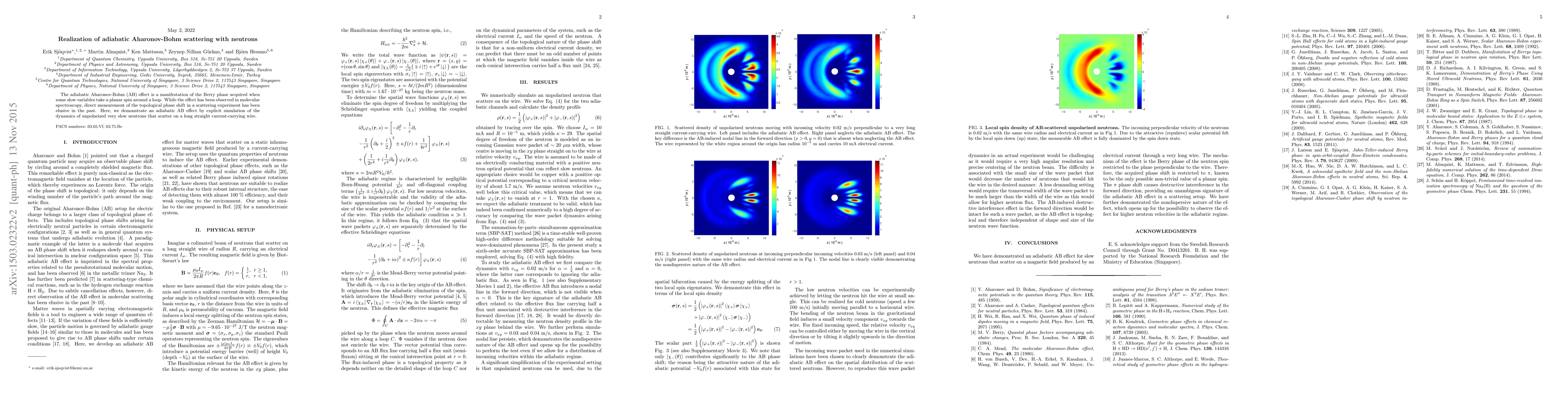 This paper demonstrates the adiabatic Aharonov-Bohm effect through the scattering dynamics of unpolarized slow neutrons around a current-carrying wire, providing the first direct measurement of the topological phase shift in such an experiment. This achievement validates theoretical predictions of the Berry phase in a novel quantum system.