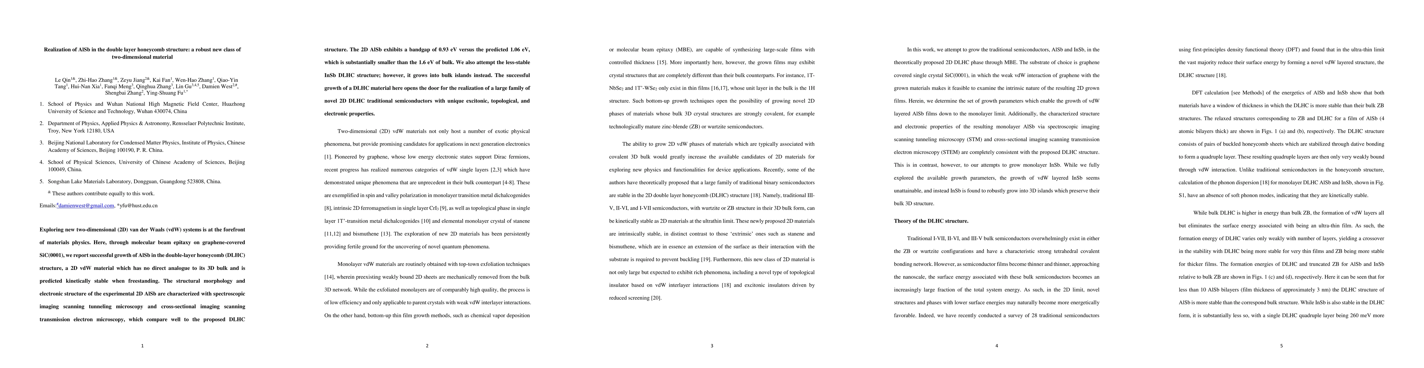 Researchers successfully grew a new 2D material called AlSb in the double-layer honeycomb structure, a novel class of materials with potential for unique electronic properties.