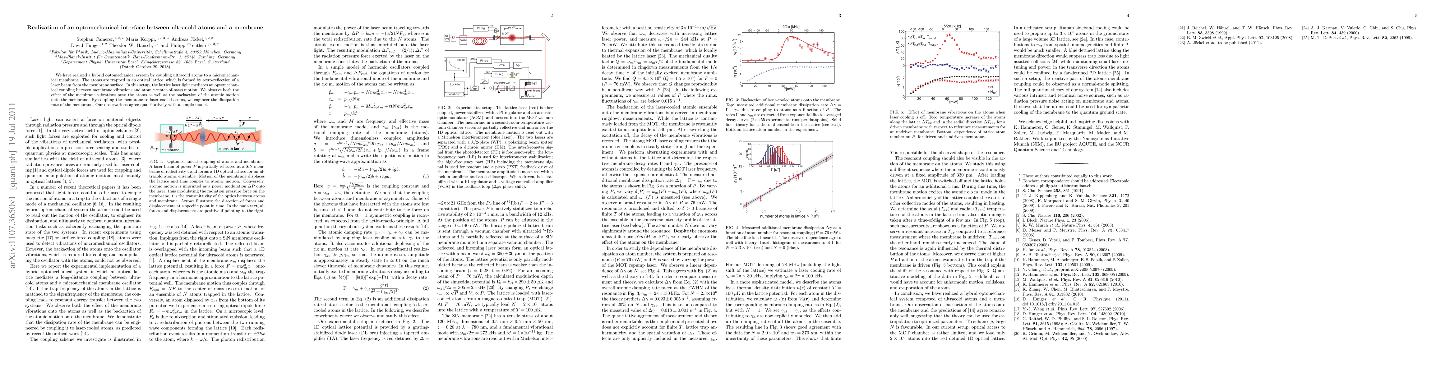 This paper describes the successful coupling of ultracold atoms to a micromechanical membrane through an optical lattice, revealing optomechanical interactions and enabling the engineering of the membrane's dissipation rate, with results matching theoretical predictions.
