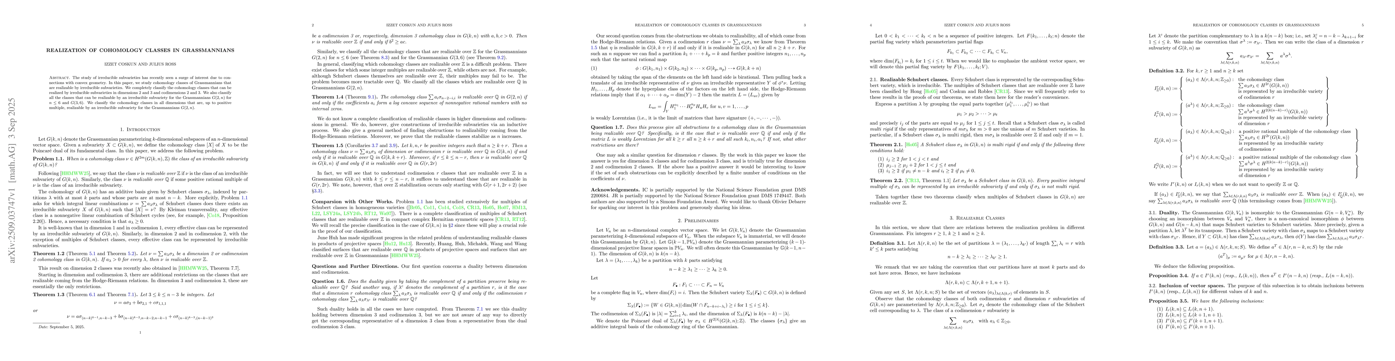 The study of irreducible subvarieties has recently seen a surge of interest due to connections with convex geometry. In this paper, we study cohomology classes of Grassmannians that are realizable by irreducible subvarieties. We completely classify the cohomology classes that can be realized by irreducible subvarieties in dimensions 2 and 3 and codimensions 2 and 3. We also classify all the classes that can be realizable by an irreducible subvariety for the Grassmannians $G(2,n)$ for $n \leq 6$ and $G(3,6)$. We classify the cohomology classes in all dimensions that are, up to positive multiple, realizable by an irreducible subvariety for the Grassmannians $G(2,n)$.