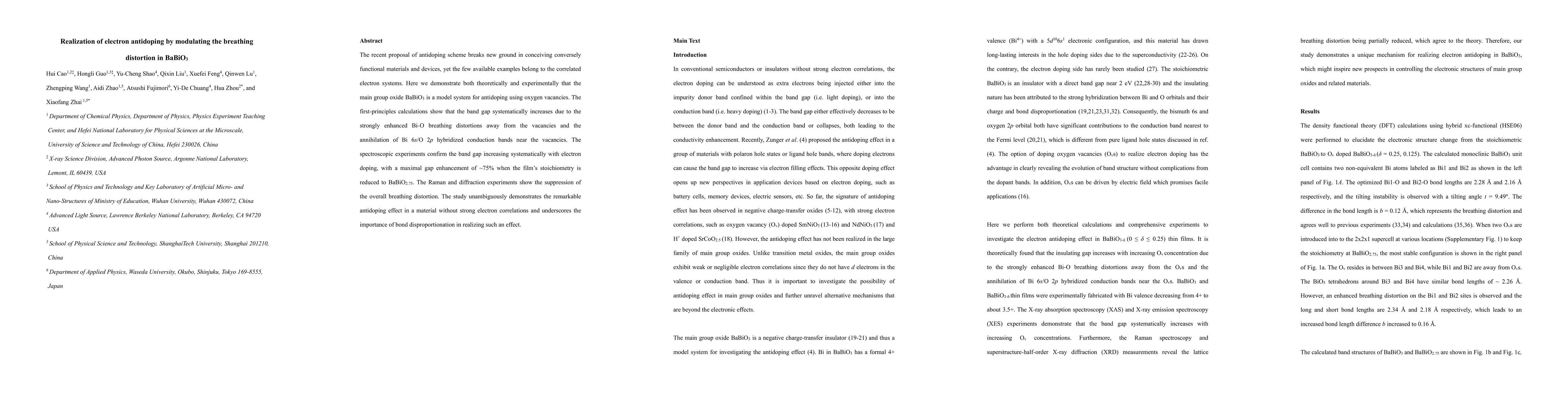 This paper demonstrates both theoretically and experimentally that BaBiO$_3$ can be used for electron antidoping through modulation of BiO breathing distortions, showing a significant band gap increase with oxygen vacancy introduction. The study highlights the material's potential for antidoping without strong electron correlations, emphasizing the role of bond disproportionation.