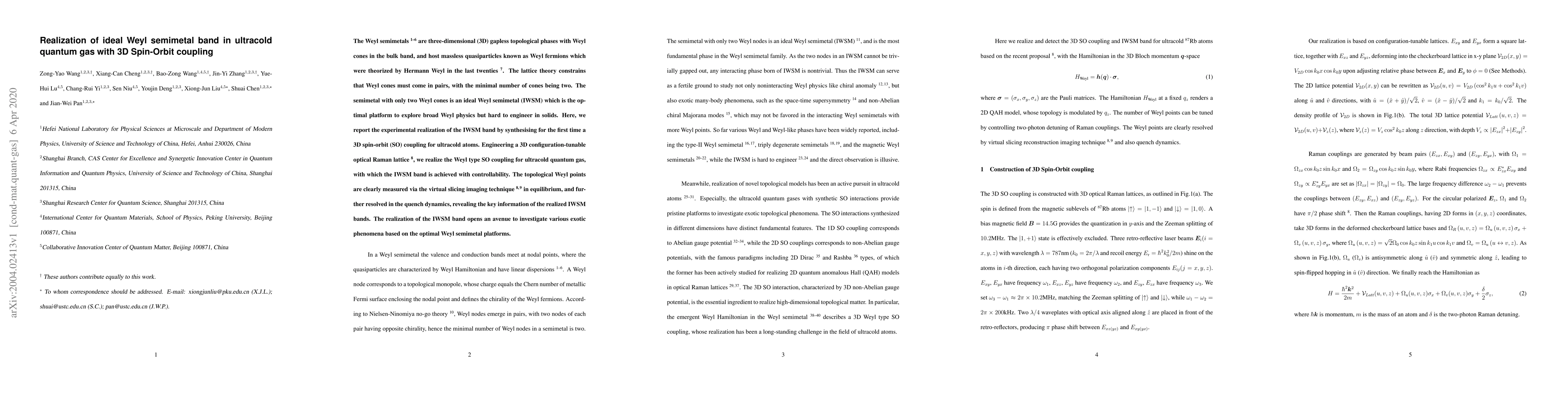 This paper reports the experimental realization of an ideal Weyl semimetal (IWSM) band in ultracold quantum gas by engineering a 3D spin-orbit coupling using a tunable optical Raman lattice. The topological Weyl points are confirmed through virtual slicing imaging and quench dynamics, paving the way for exploring exotic phenomena in Weyl semimetals.