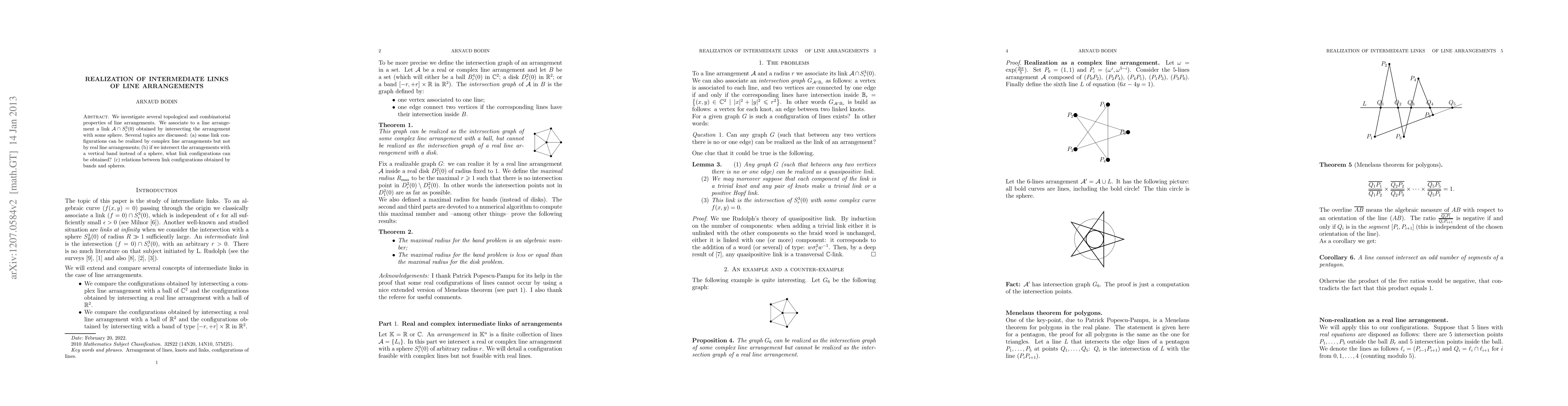 This paper explores topological and combinatorial properties of line arrangements, focusing on link configurations obtained by intersecting these arrangements with spheres or vertical bands, and discusses differences between real and complex line arrangements in realizing these configurations.