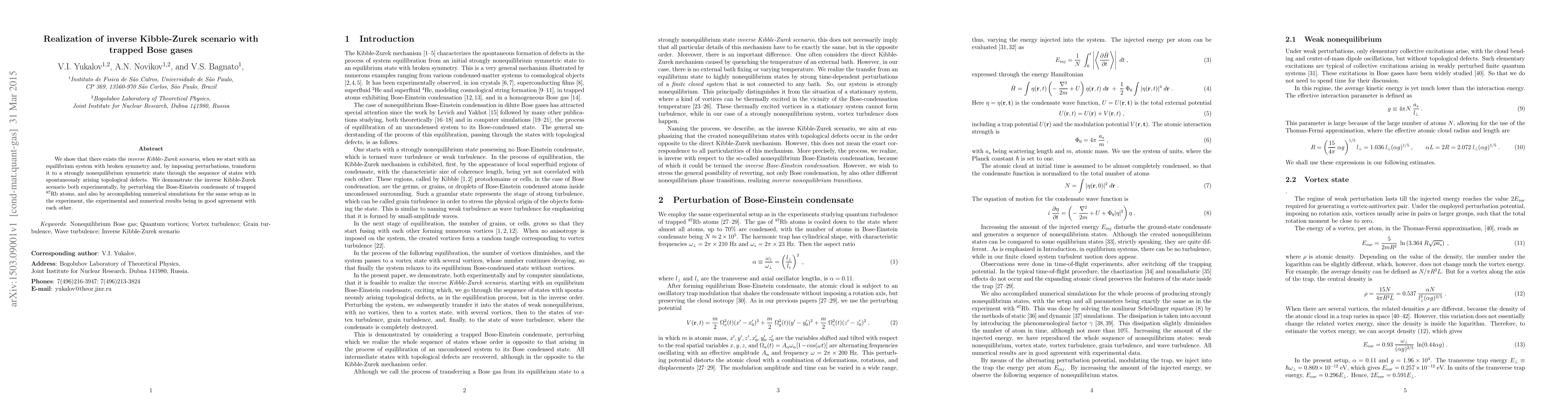 We show that there exists the inverse Kibble-Zurek scenario, when we start with an equilibrium system with broken symmetry and, by imposing perturbations, transform it to a strongly nonequilibrium symmetric state through the sequence of states with spontaneously arising topological defects. We demonstrate the inverse Kibble-Zurek scenario both experimentally, by perturbing the Bose-Einstein condensate of trapped $^{87}$Rb atoms, and also by accomplishing numerical simulations for the same setup as in the experiment, the experimental and numerical results being in good agreement with each other.