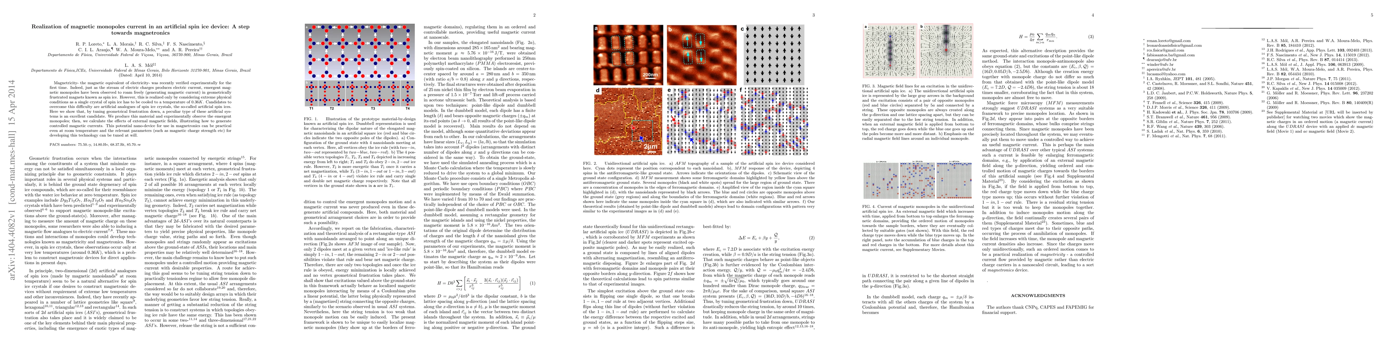 Magnetricity- the magnetic equivalent of electricity- was recently verified experimentally for the first time. Indeed, just as the stream of electric charges produces electric current, emergent magnetic monopoles have been observed to roam freely (generating magnetic current) in geometrically frustrated magnets known as spin ice. However, this is realized only by considering extreme physical conditions as a single crystal of spin ice has to be cooled to a temperature of $0.36 K$. Candidates to overcome this difficulty are artificial analogues of spin ice crystals, the so-called artificial spin ices. Here we show that, by tuning geometrical frustration down, a peculiar type of these artificial systems is an excellent candidate. We produce this material and experimentally observe the emergent monopoles; then, we calculate the effects of external magnetic fields, illustrating how to generate controlled magnetic currents. This potential nano-device for use in magnetronics can be practical even at room temperature and the relevant parameters (such as magnetic charge strength etc) for developing this technology can be tuned at will.