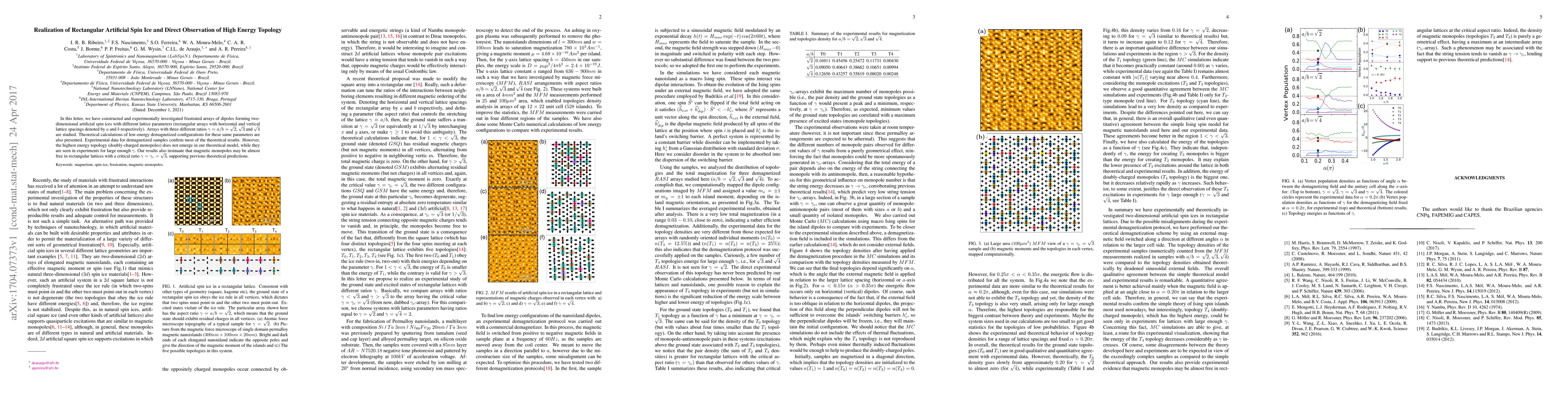 In this letter, we have constructed and experimentally investigated frustrated arrays of dipoles forming two-dimensional artificial spin ices with different lattice parameters (rectangular arrays with horizontal and vertical lattice spacings denoted by $a$ and $b$ respectively). Arrays with three different ratios $\gamma =a/b = \sqrt{2}$, $\sqrt{3}$ and $\sqrt{4}$ are studied. Theoretical calculations of low-energy demagnetized configurations for these same parameters are also presented. Experimental data for demagnetized samples confirm most of the theoretical results. However, the highest energy topology (doubly-charged monopoles) does not emerge in our theoretical model, while they are seen in experiments for large enough $\gamma$. Our results also insinuate that magnetic monopoles may be almost free in rectangular lattices with a critical ratio $\gamma = \gamma_{c} = \sqrt{3}$, supporting previous theoretical predictions.