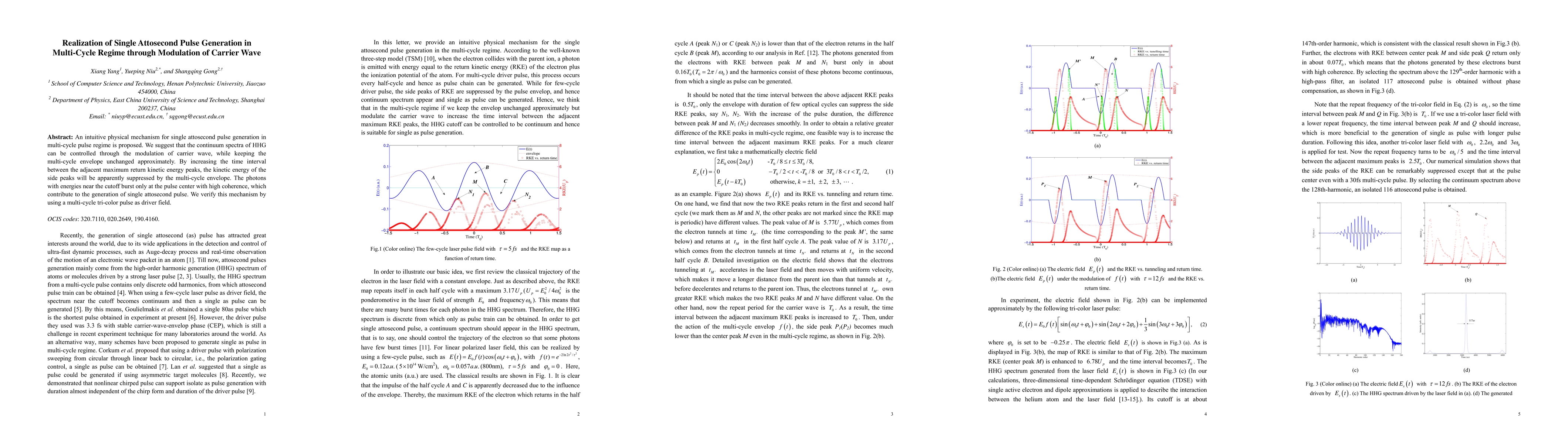 This paper proposes a method to generate single attosecond pulses in multi-cycle regimes by modulating the carrier wave of high-harmonic generation (HHG) while maintaining the multi-cycle envelope. The modulation suppresses the kinetic energy of side peaks, leading to coherent photon bursts at the pulse center that generate the attosecond pulse.