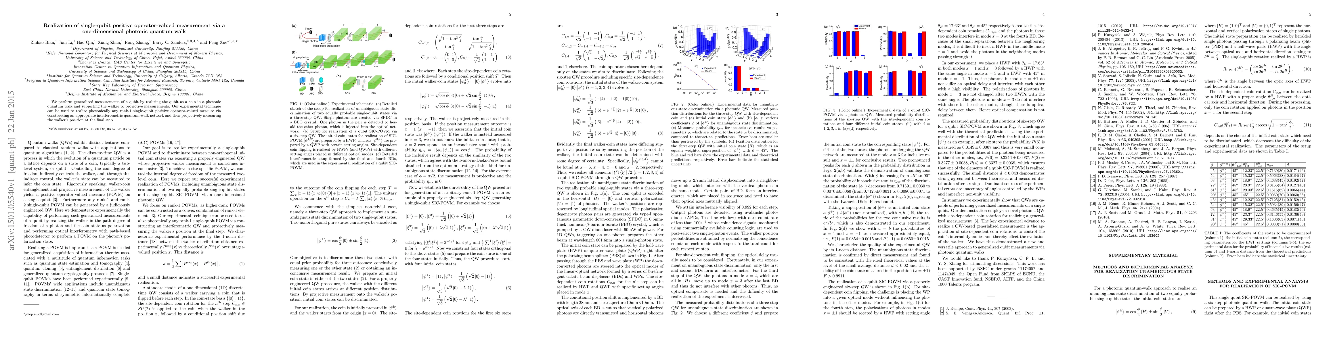 This paper demonstrates a method to perform generalized measurements on a single qubit using a photonic quantum walk, where the qubit is represented as a coin in the walk. The technique allows for the realization of any rank-1 single-qubit positive operator-valued measure by constructing a tailored interferometric quantum-walk network and measuring the walker's position at the end.