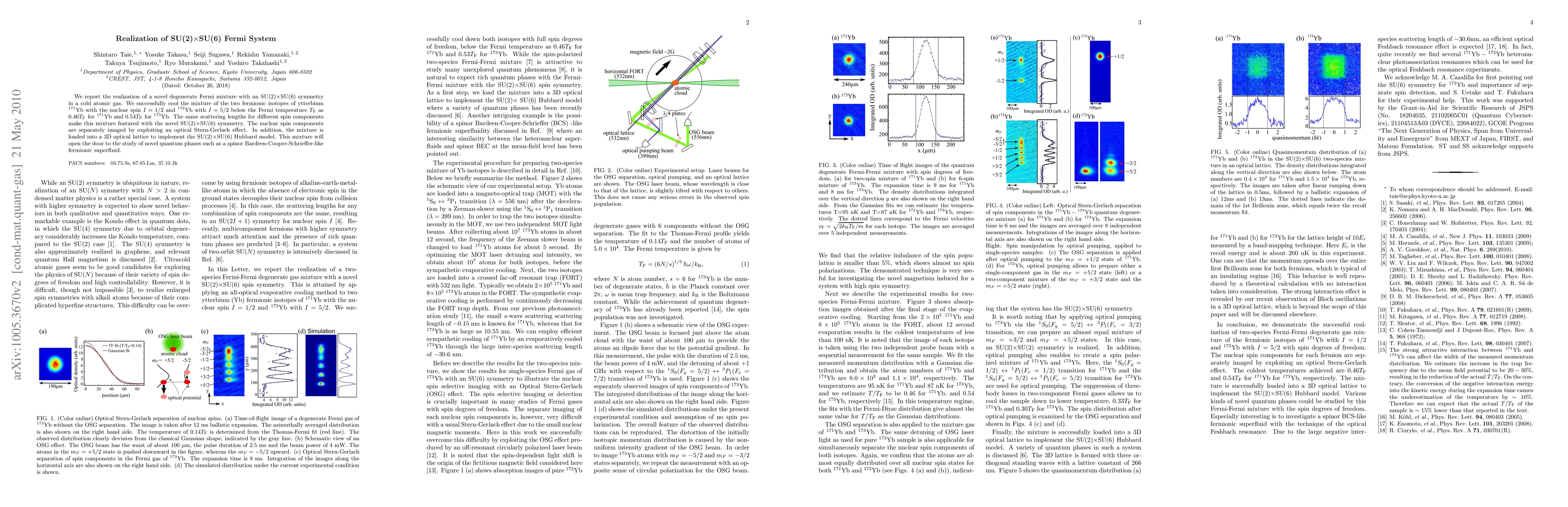 This research reports the creation of a degenerate Fermi mixture of ytterbium isotopes with SU(2)*SU(6) symmetry in a cold atomic gas, enabling the study of novel quantum phases like a spinor BCS-like fermionic superfluid. The mixture is cooled below the Fermi temperature and imaged using an optical Stern-Gerlach effect.