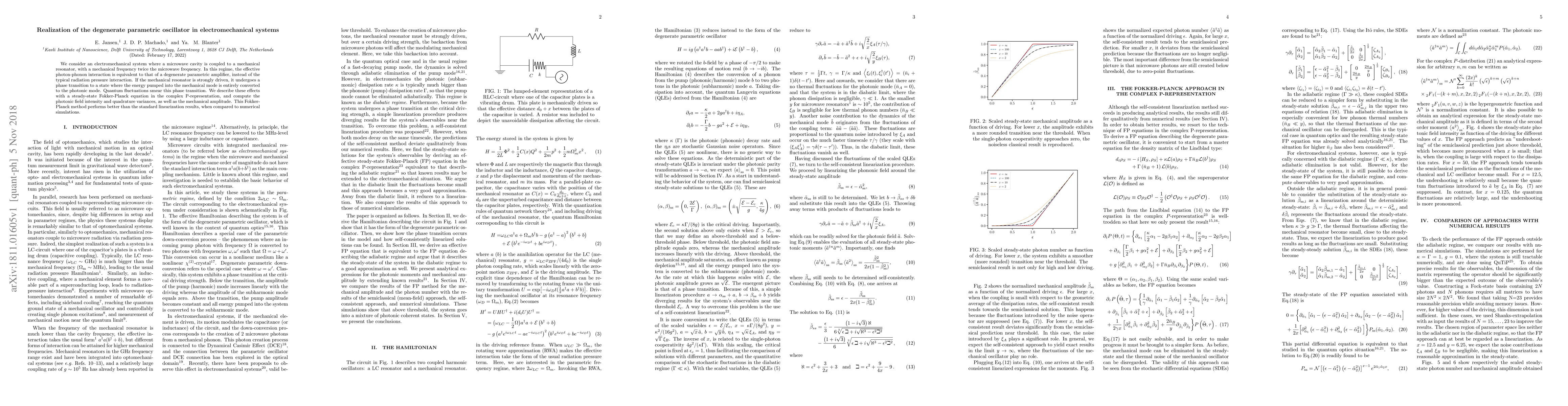The paper presents a detailed analysis of an electromechanical system in the parametric regime using quantum Langevin equations and a Fokker-Planck approach in the complex P-representation, providing analytical results that agree well with numerical simulations.